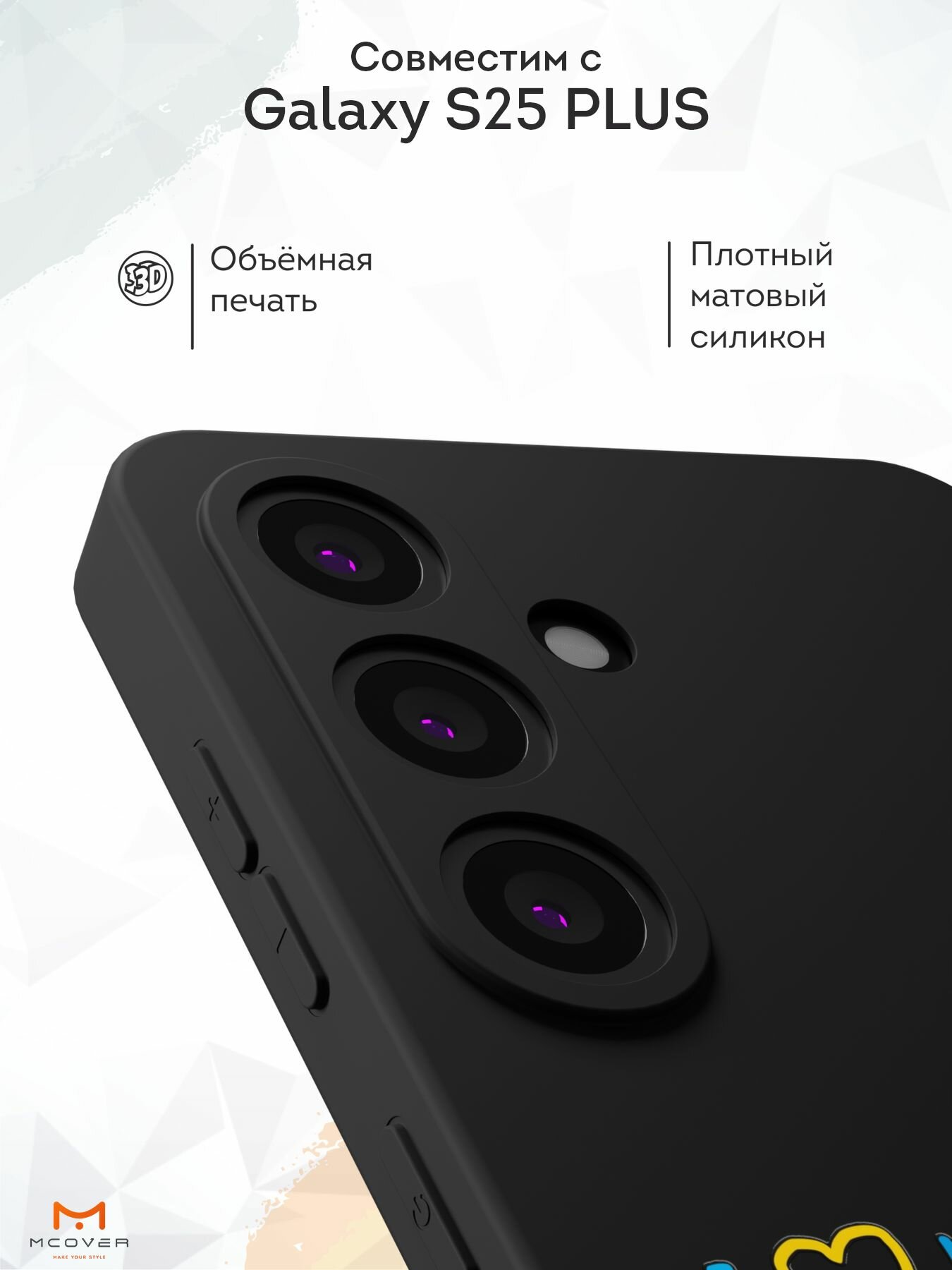 Силиконовый чехол Mcover, на Galaxy S25 Plus, с принтом Герб и орнамент, черный, защита камеры 530 ₽