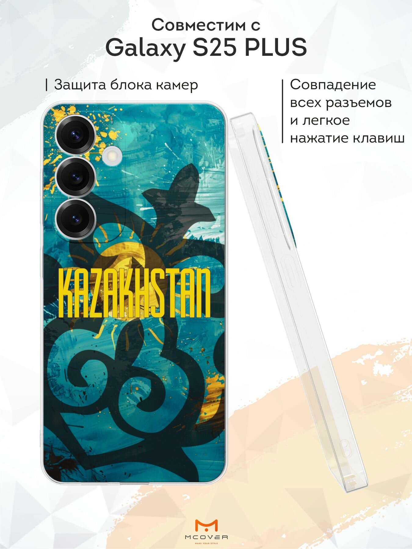 Силиконовый чехол Mcover, на Galaxy S25 Plus, с принтом Казахская абстракция, прозрачный, защита камеры информация:
