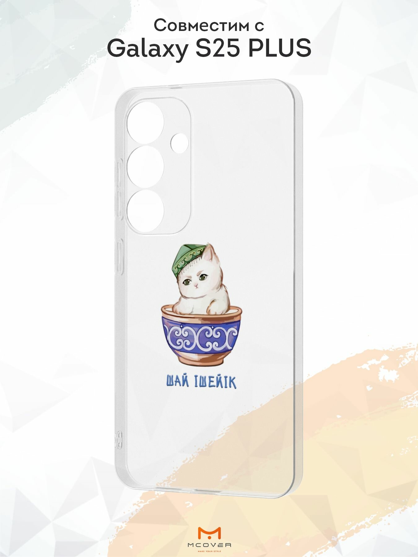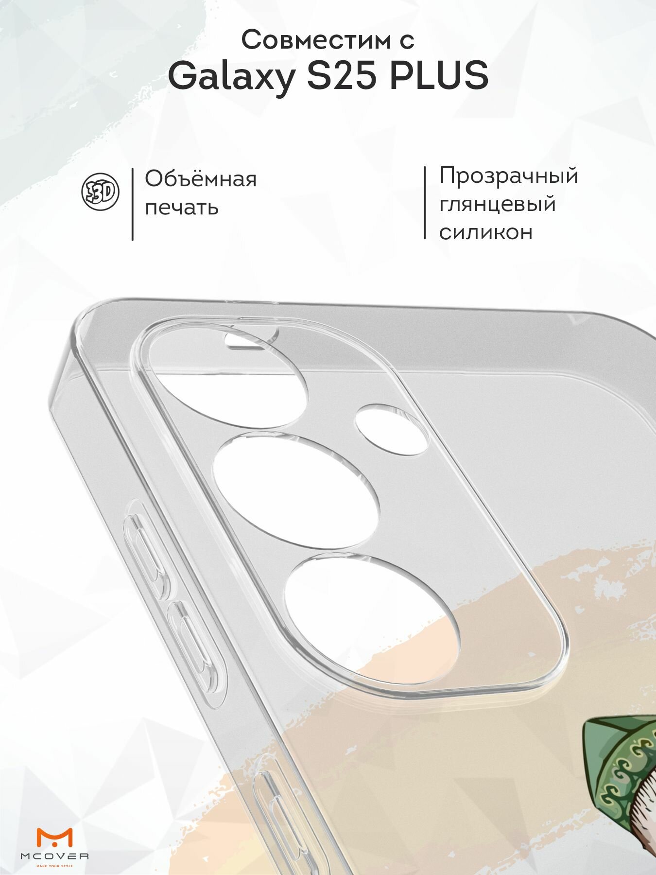 Силиконовый чехол Mcover, на Galaxy S25 Plus, с принтом Казахская абстракция, прозрачный, защита камеры 530 ₽