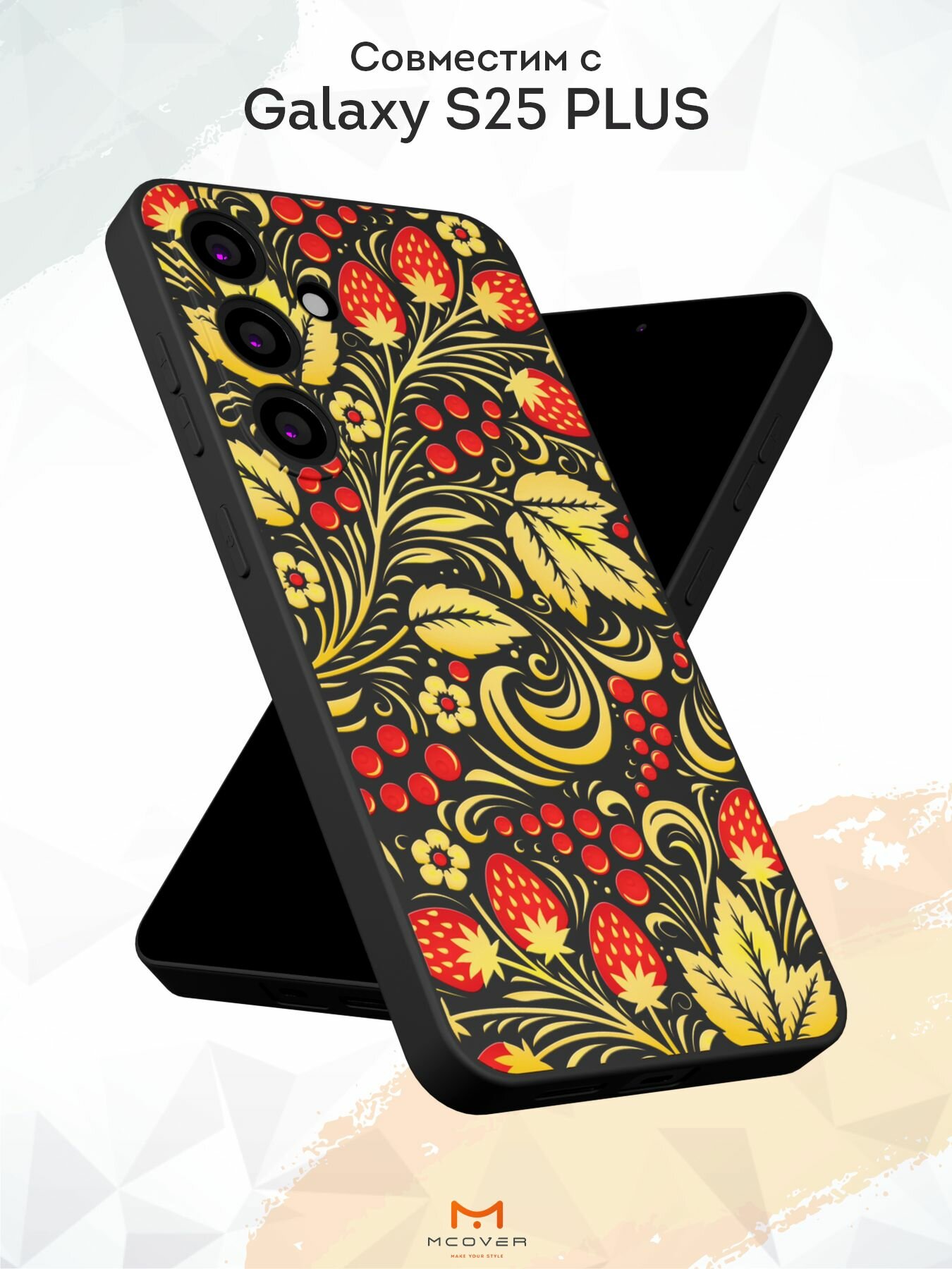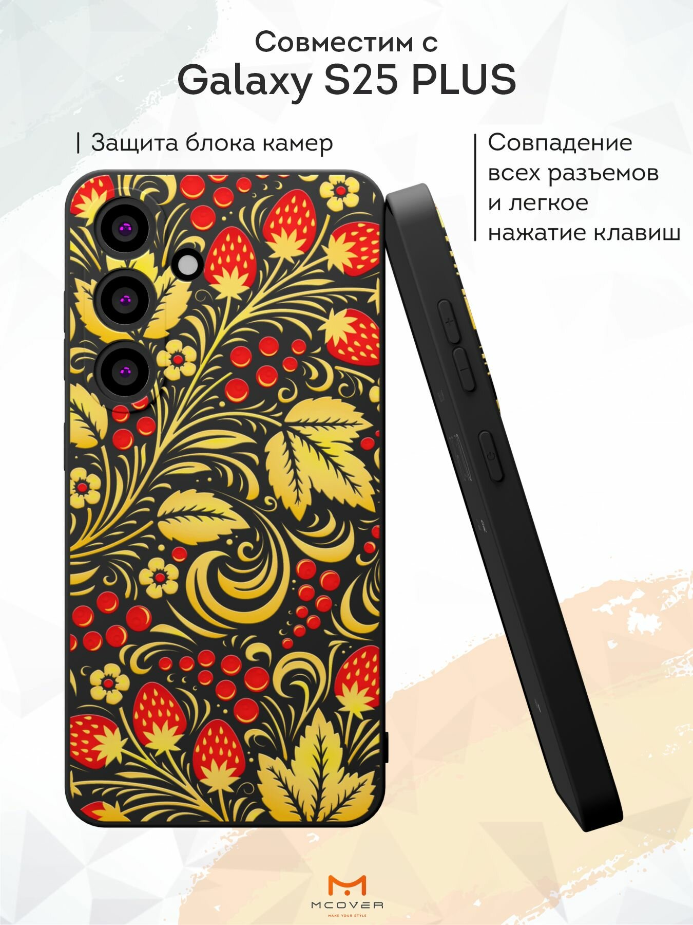 Отзывы на Силиконовый чехол Mcover, на Galaxy S25 Plus, с принтом Хохлома, черный, защита камеры
