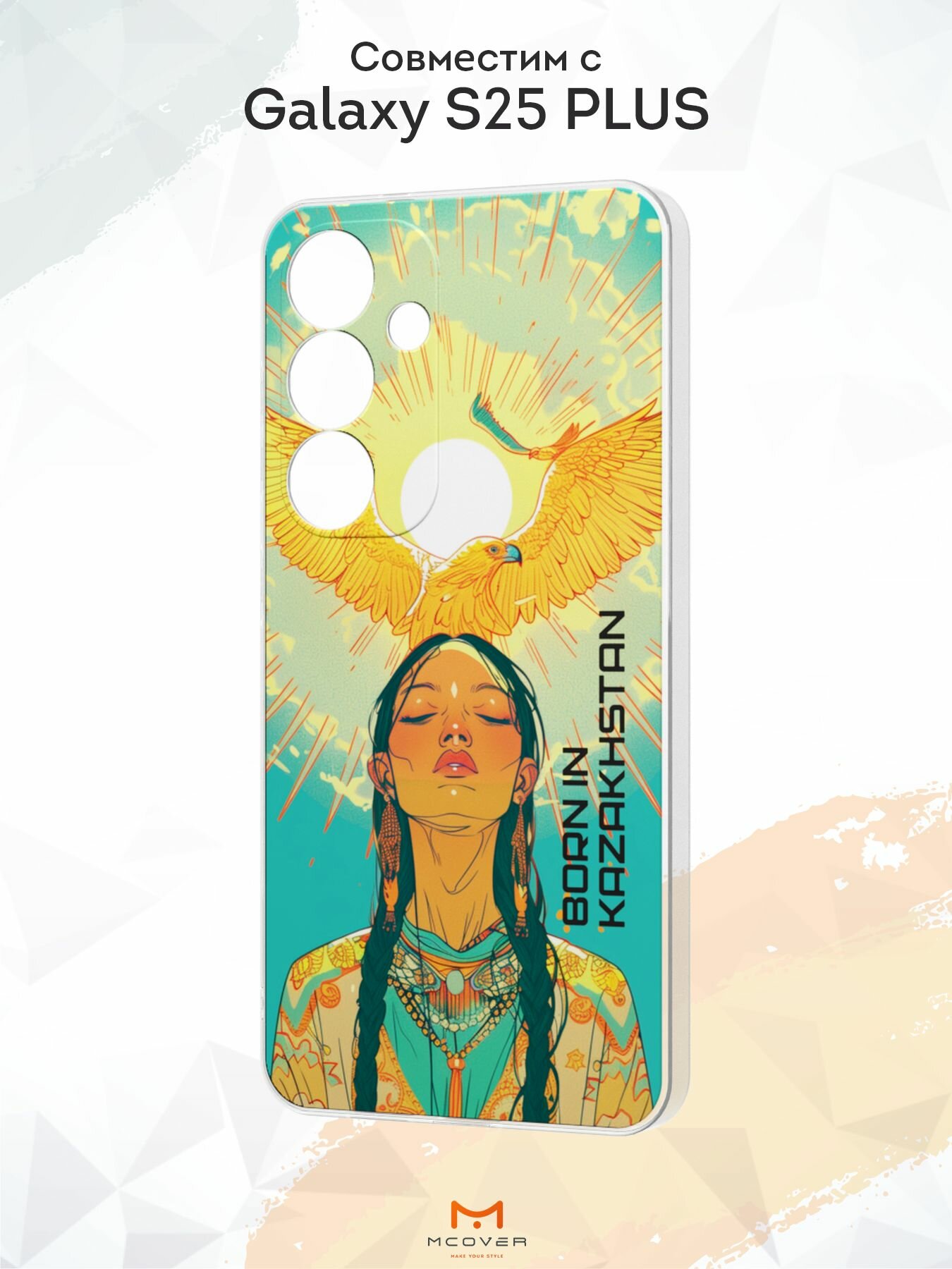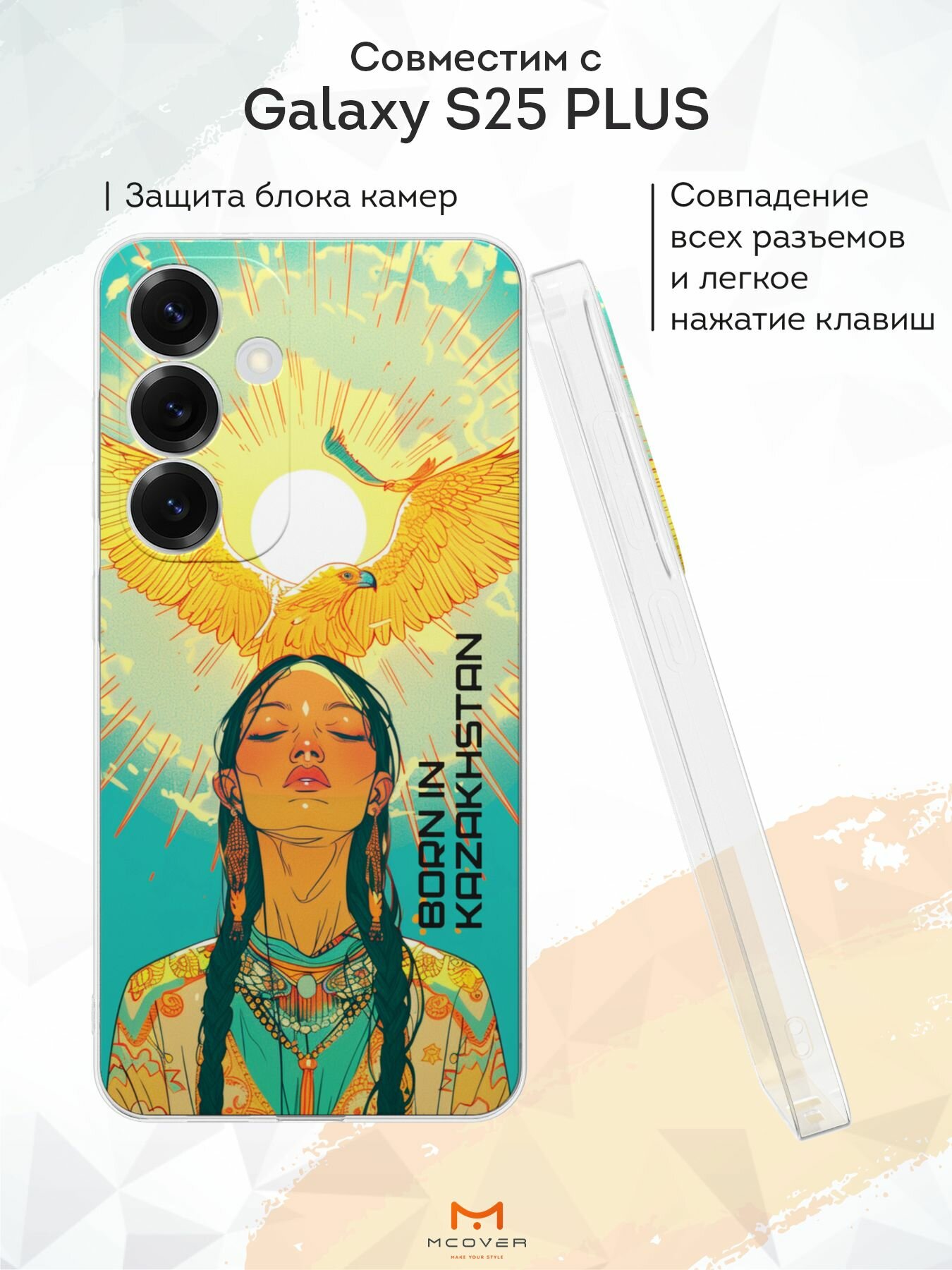 Силиконовый чехол Mcover, на Galaxy S25 Plus, с принтом Казахская абстракция, прозрачный, защита камеры 530 ₽