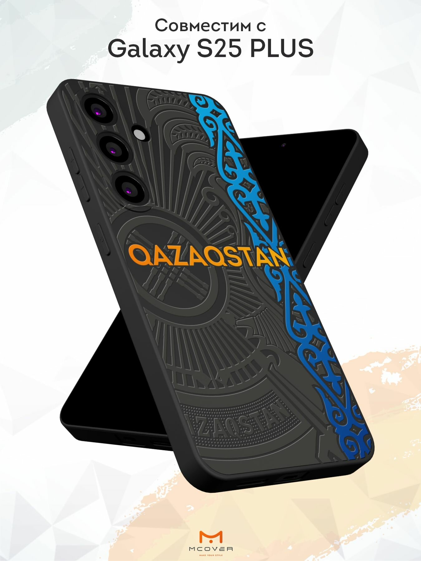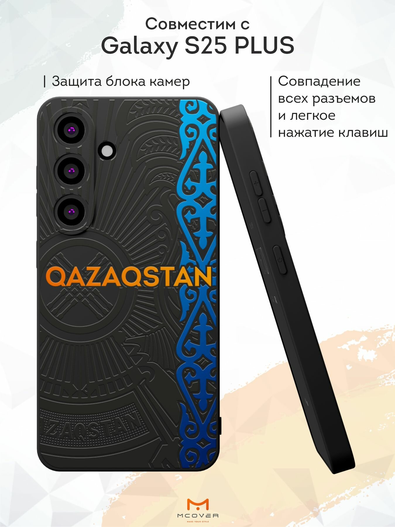 Силиконовый чехол Mcover, на Galaxy S25 Plus, с принтом Казахстан узор, черный, защита камеры 530 ₽