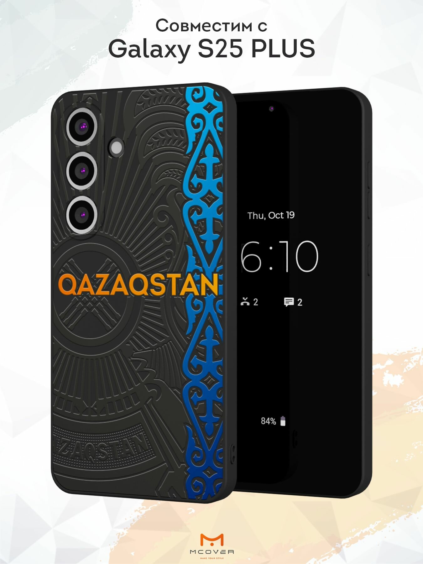 Силиконовый чехол Mcover, на Galaxy S25 Plus, с принтом Казахская абстракция, прозрачный, защита камеры 530 ₽