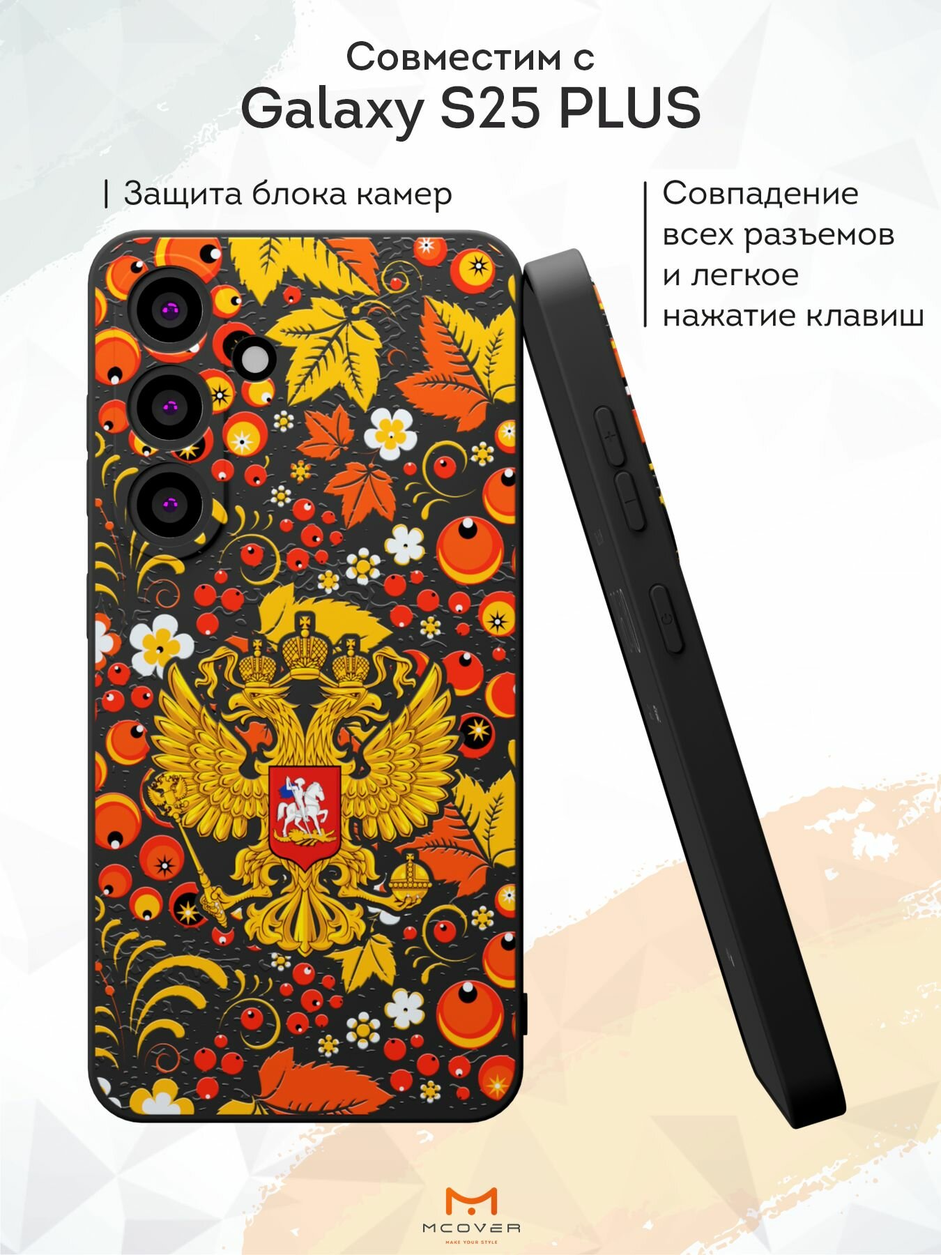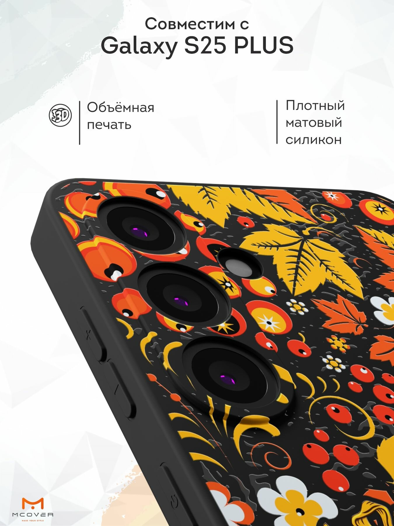 Силиконовый чехол Mcover, на Galaxy S25 Plus, с принтом Хохлома, черный, защита камеры 530 ₽