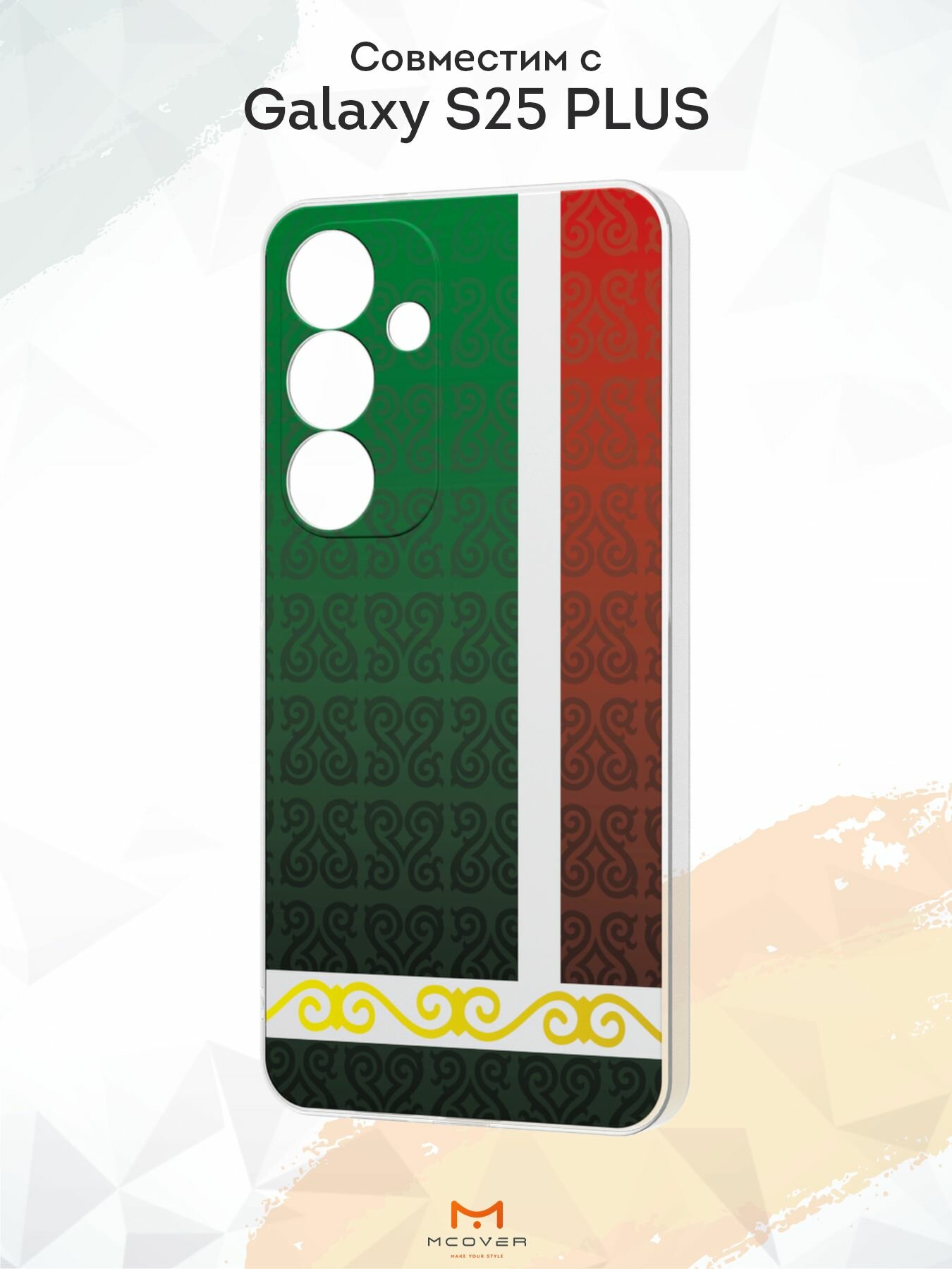 Силиконовый чехол Mcover, на Galaxy S25 Plus, с принтом Казахская абстракция, прозрачный, защита камеры 530 ₽