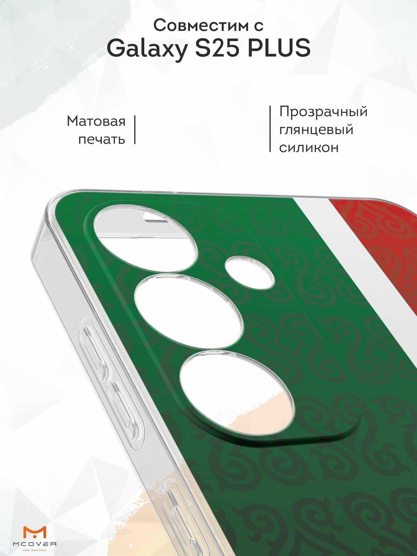 Отзывы на Силиконовый чехол Mcover, на Galaxy S25 Plus, с принтом Флаг Чечни, прозрачный, защита камеры