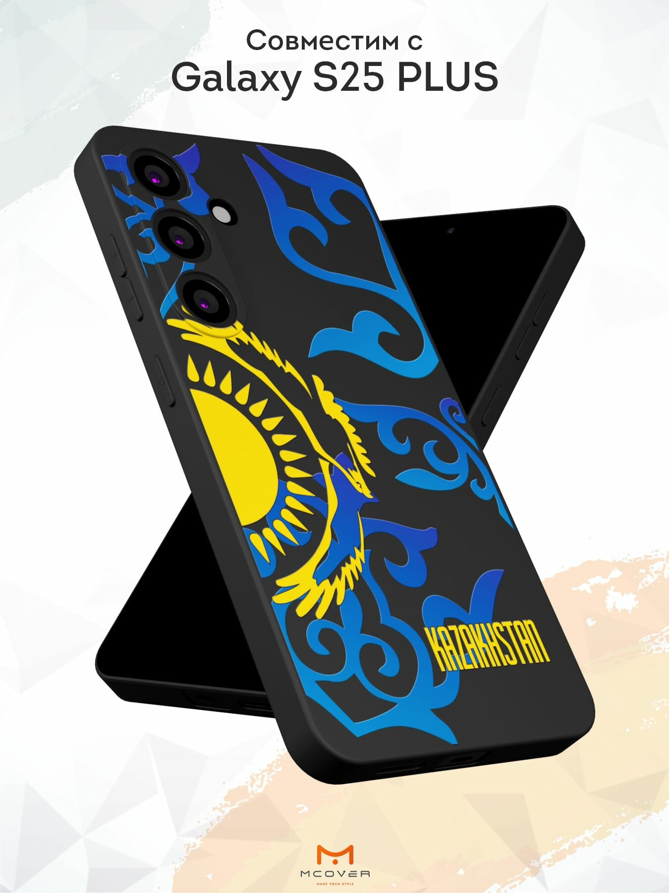 Силиконовый чехол Mcover, на Galaxy S25 Plus, с принтом Соколо Казахстан, черный, защита камеры информация: