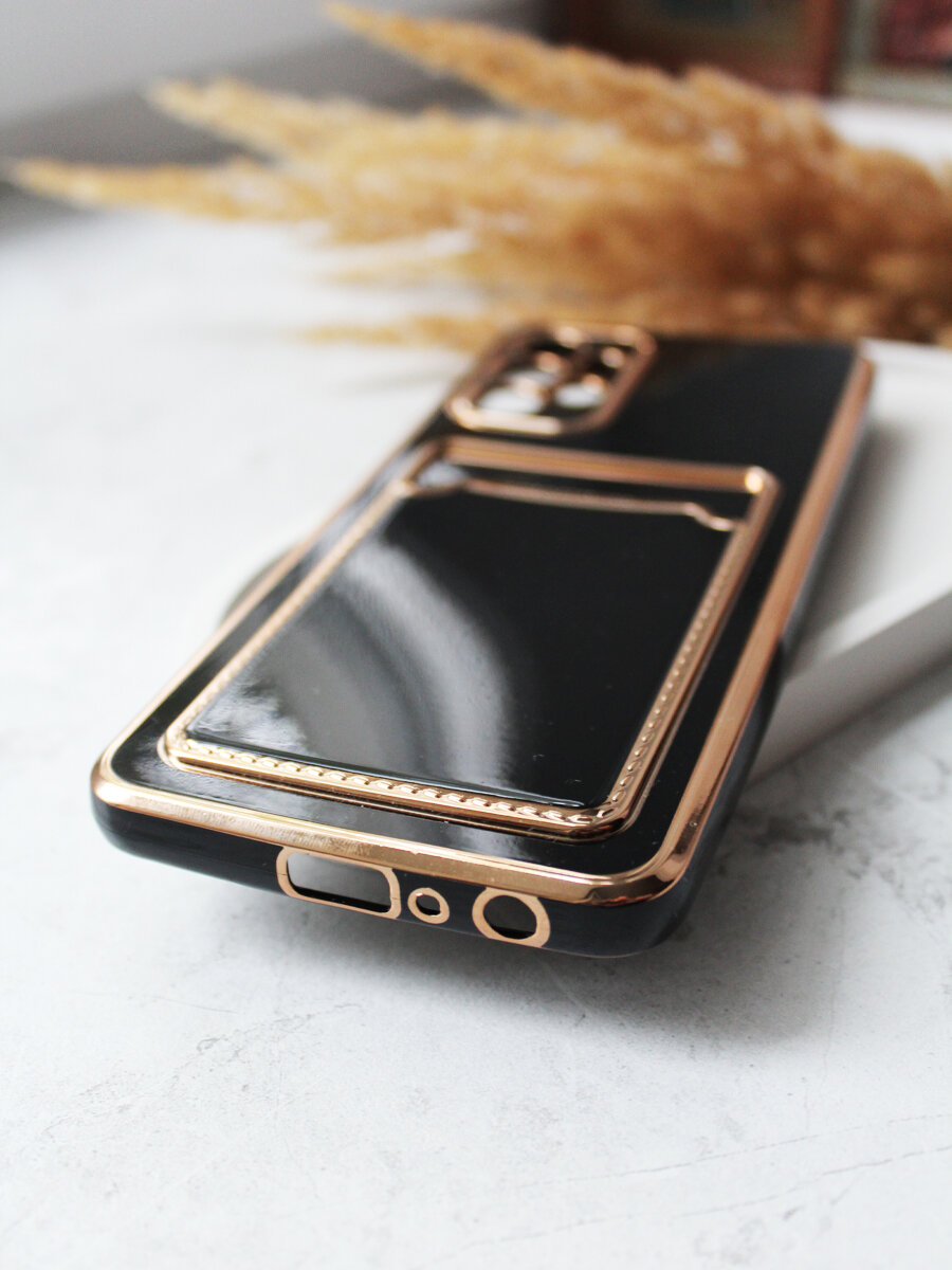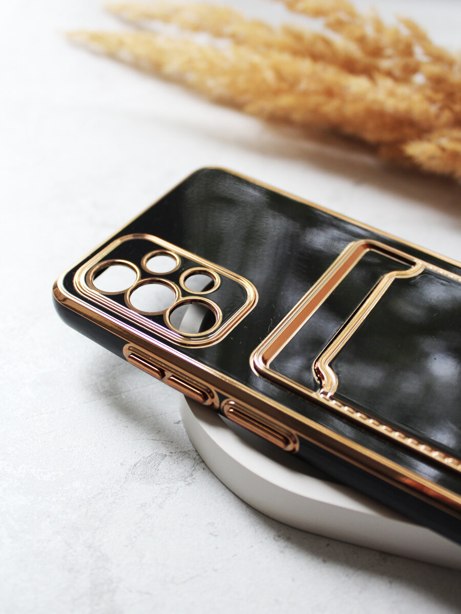Чехол на Samsung Galaxy A32 с золотой рамкой противоударный бампер с карманом для карт для Самсунг гэлэкси А32 Черный информация: