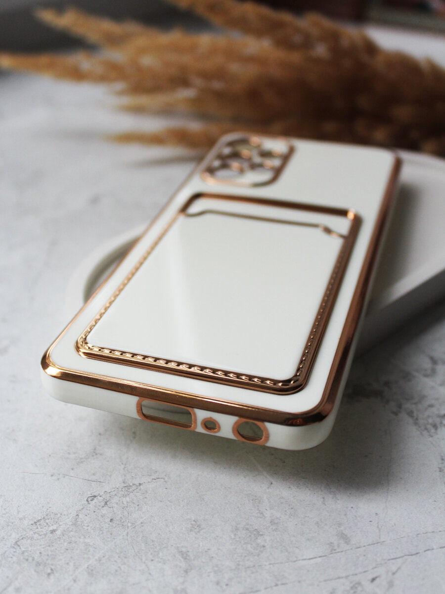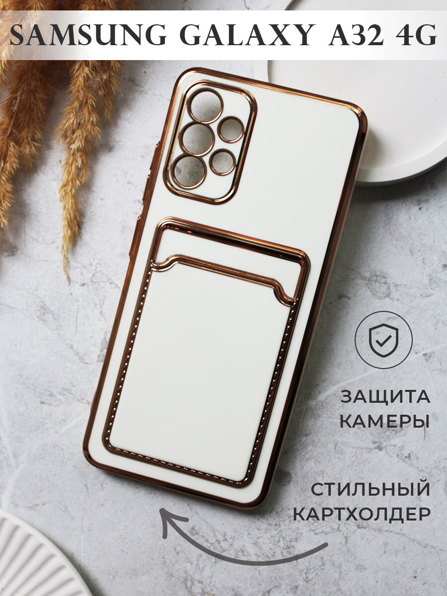 Чехол на Samsung Galaxy A32 с золотой рамкой противоударный бампер с карманом для карт для Самсунг гэлэкси А32 Белый информация: