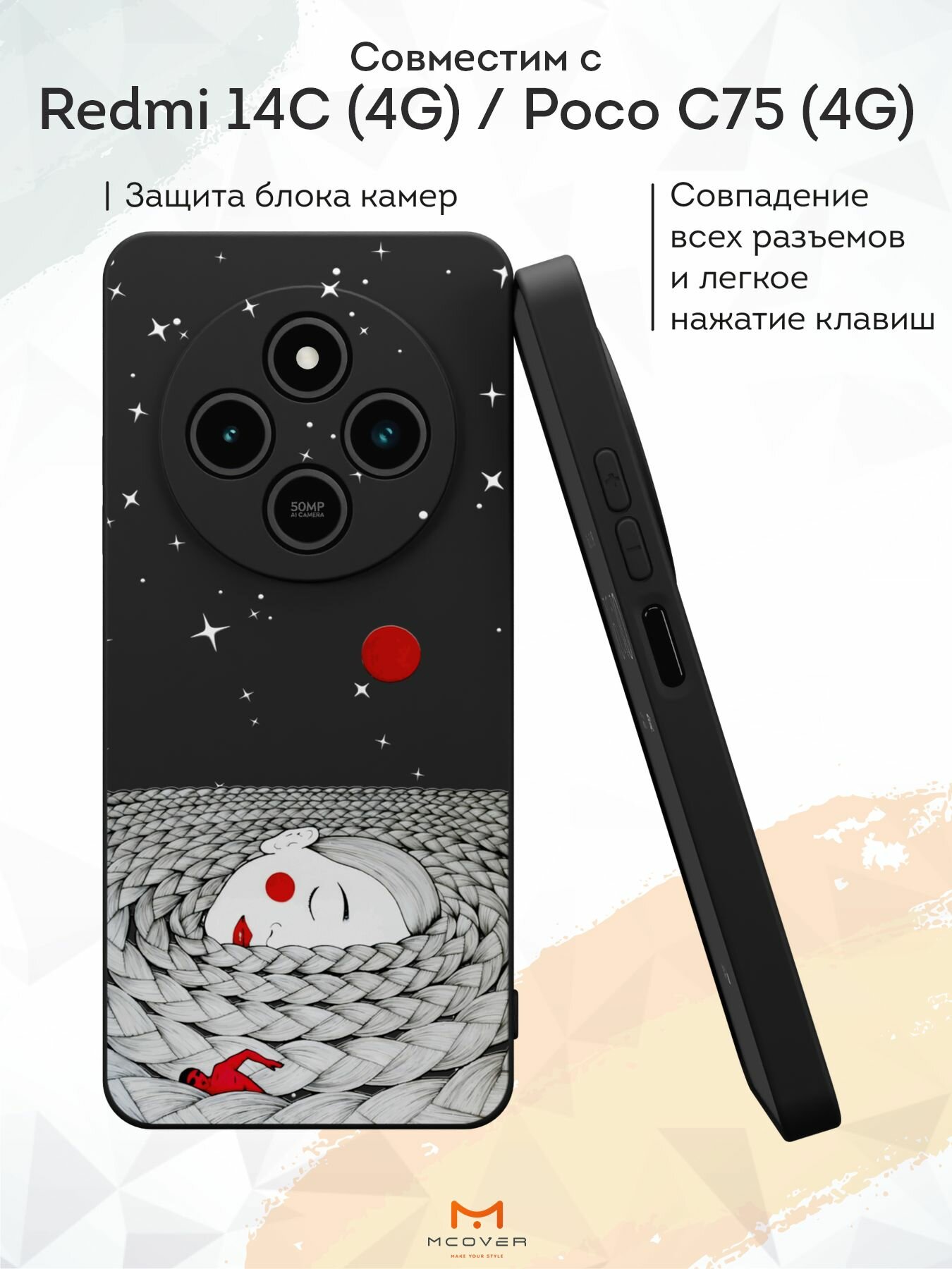 Силиконовый чехол Mcover на Redmi 14C (4G)/Poco C75 (4G), с принтом Девушка со звездой 530 ₽