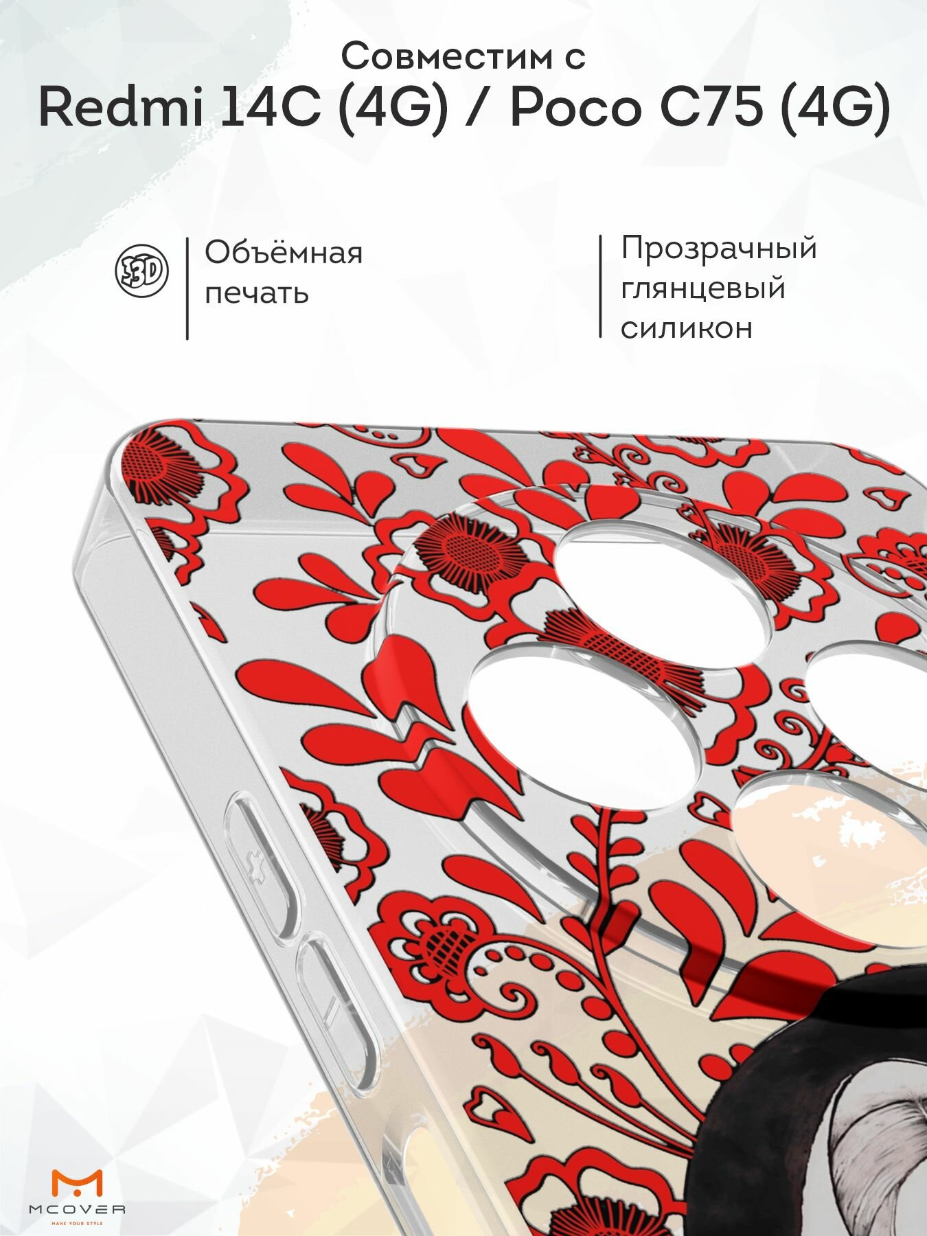Силиконовый чехол Mcover на Redmi 14C (4G)/Poco C75 (4G), с принтом Дева в кокошнике 530 ₽