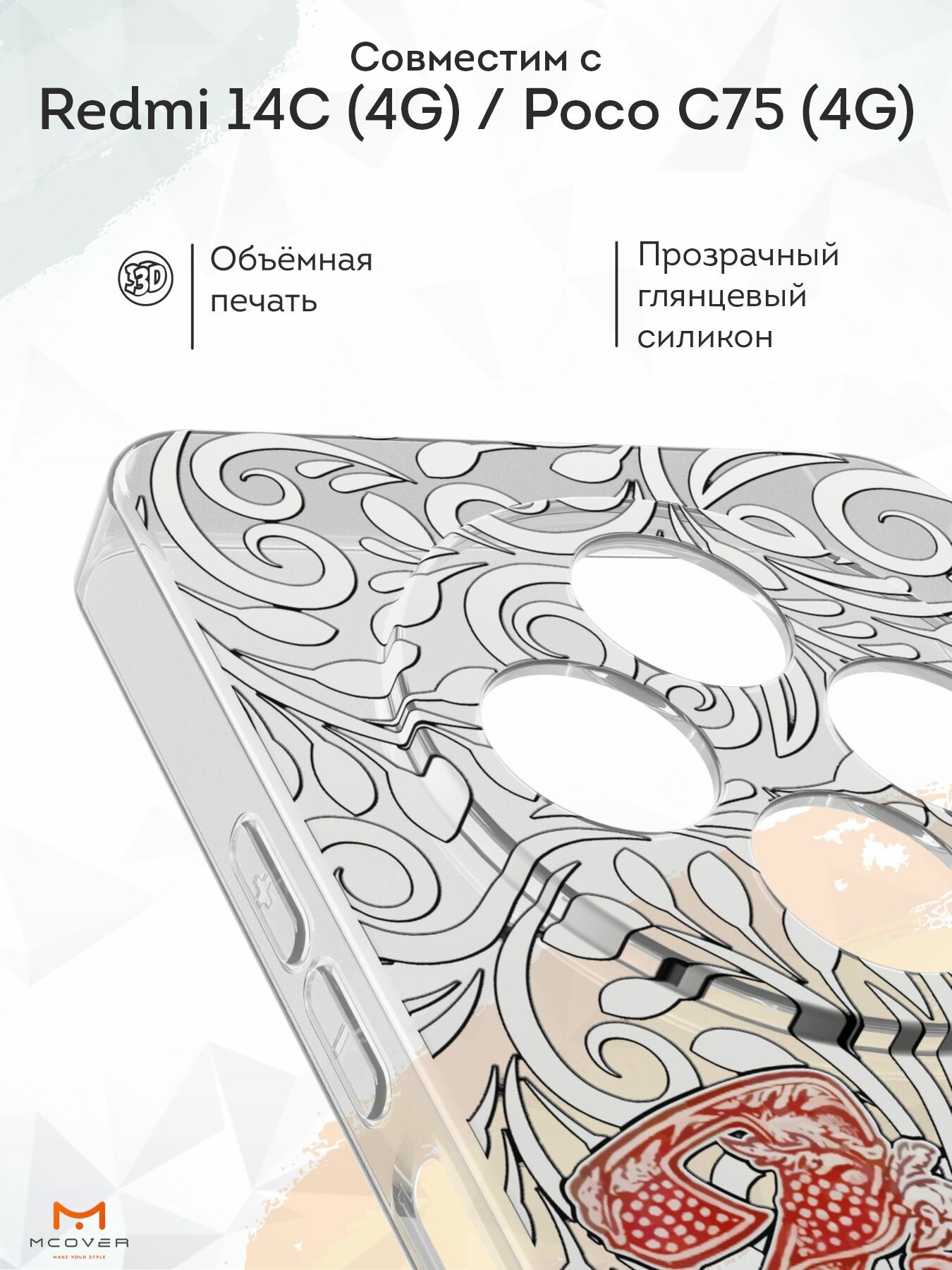 Силиконовый чехол Mcover на Redmi 14C (4G)/Poco C75 (4G), с принтом Russian folk 530 ₽