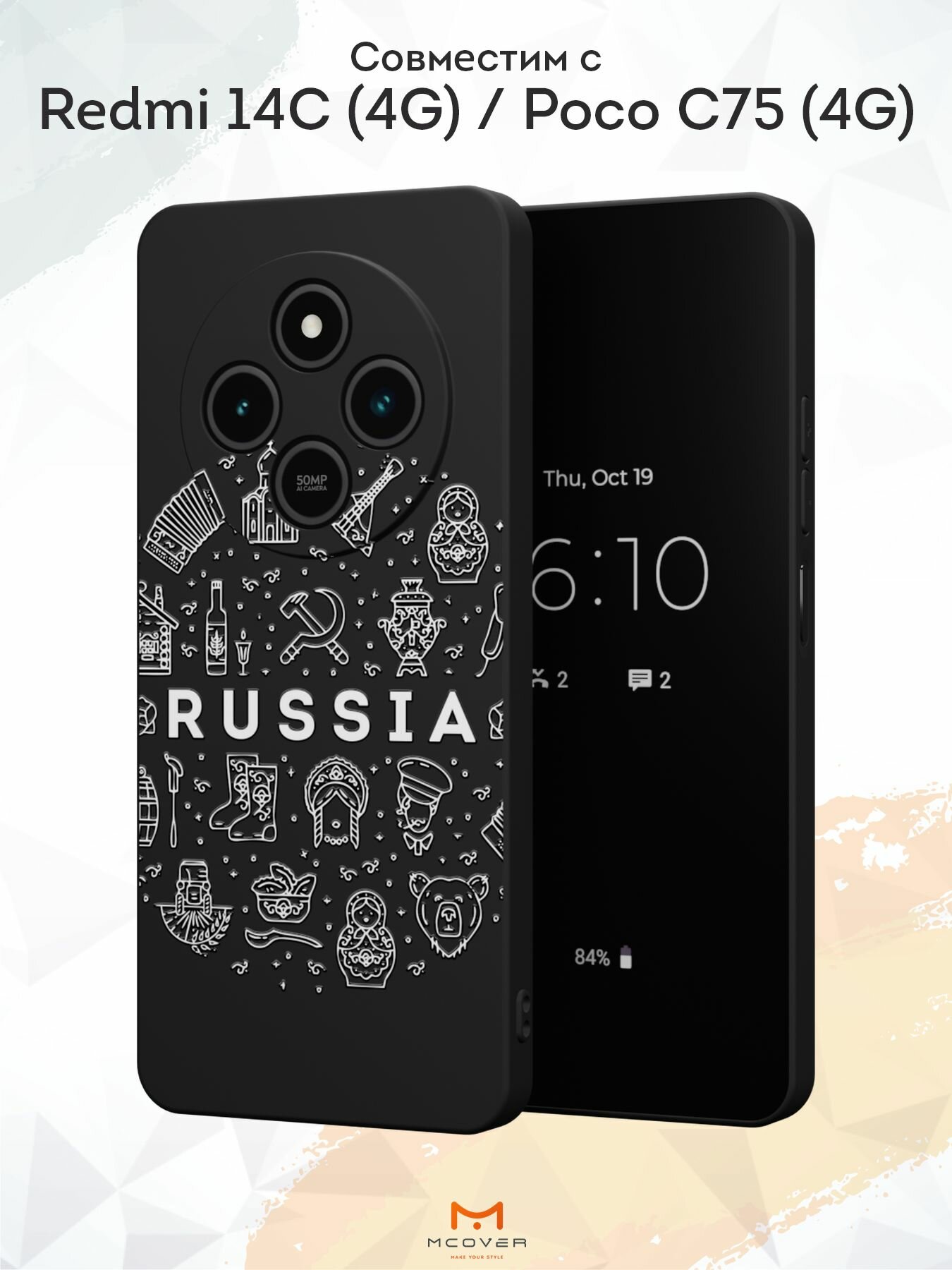 Силиконовый чехол Mcover на Redmi 14C (4G)/Poco C75 (4G), с принтом Russia и ее символы информация: