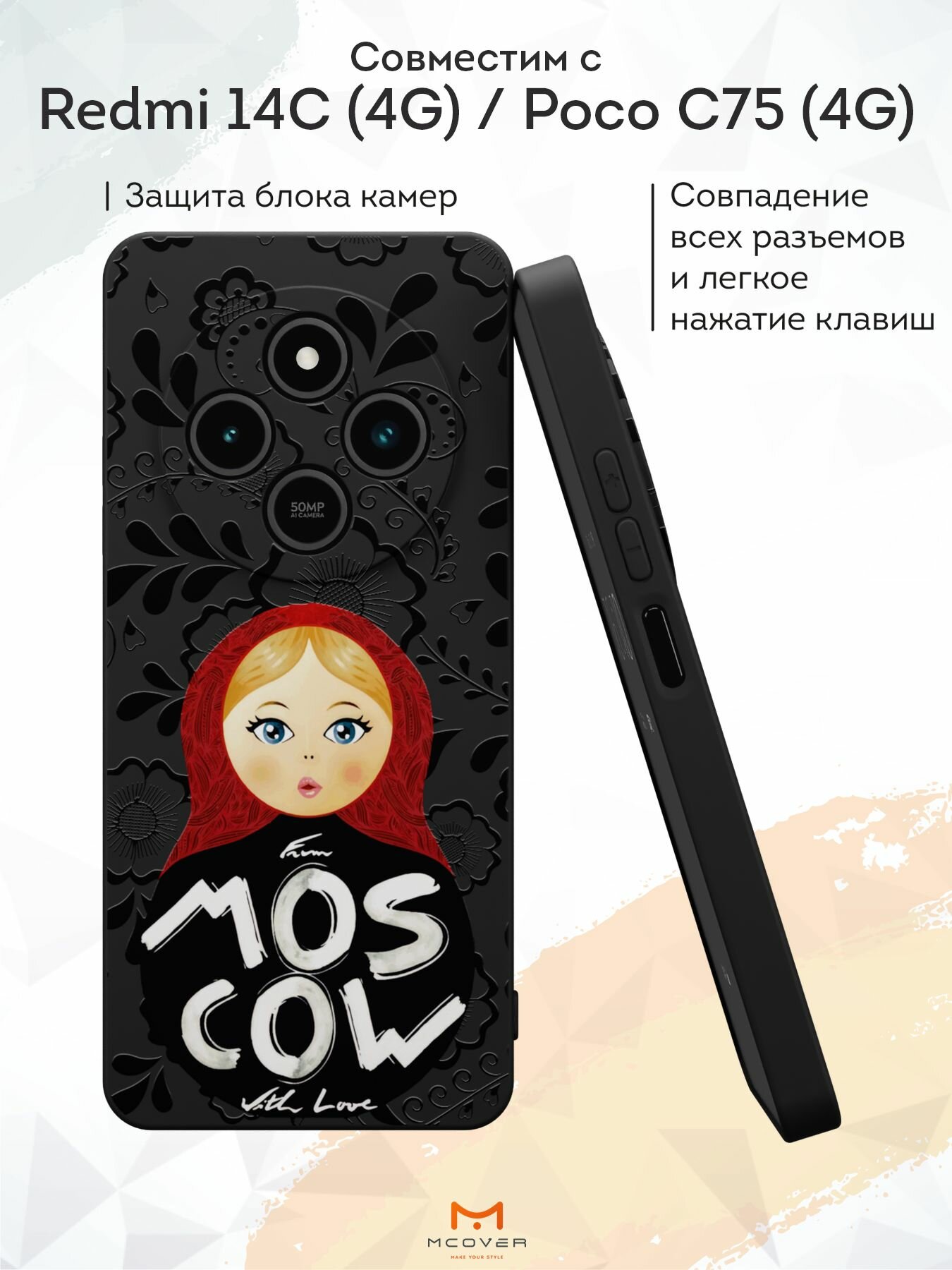 Силиконовый чехол Mcover на Redmi 14C (4G)/Poco C75 (4G), с принтом Moscow матрешка информация: