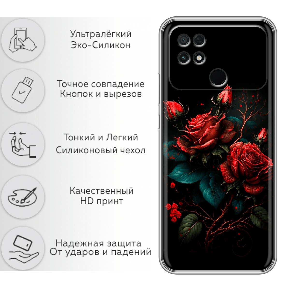 10 цен на Чехол для Xiaomi Poco C40 с принтом Розы красные на Сяоми Поко С40