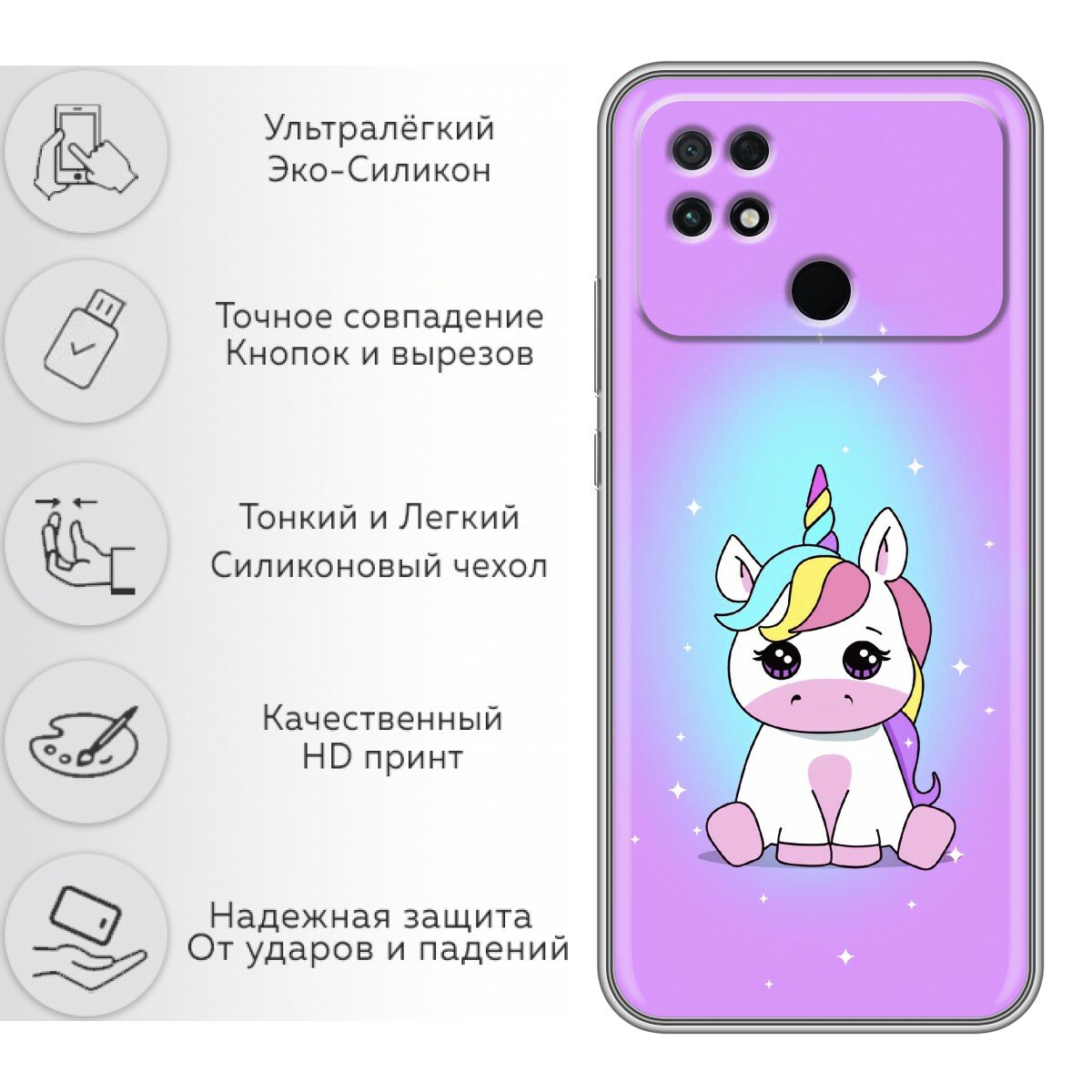 Отзывы на Чехол для Xiaomi Poco C40 с принтом Розовый единорог на Сяоми Поко С40