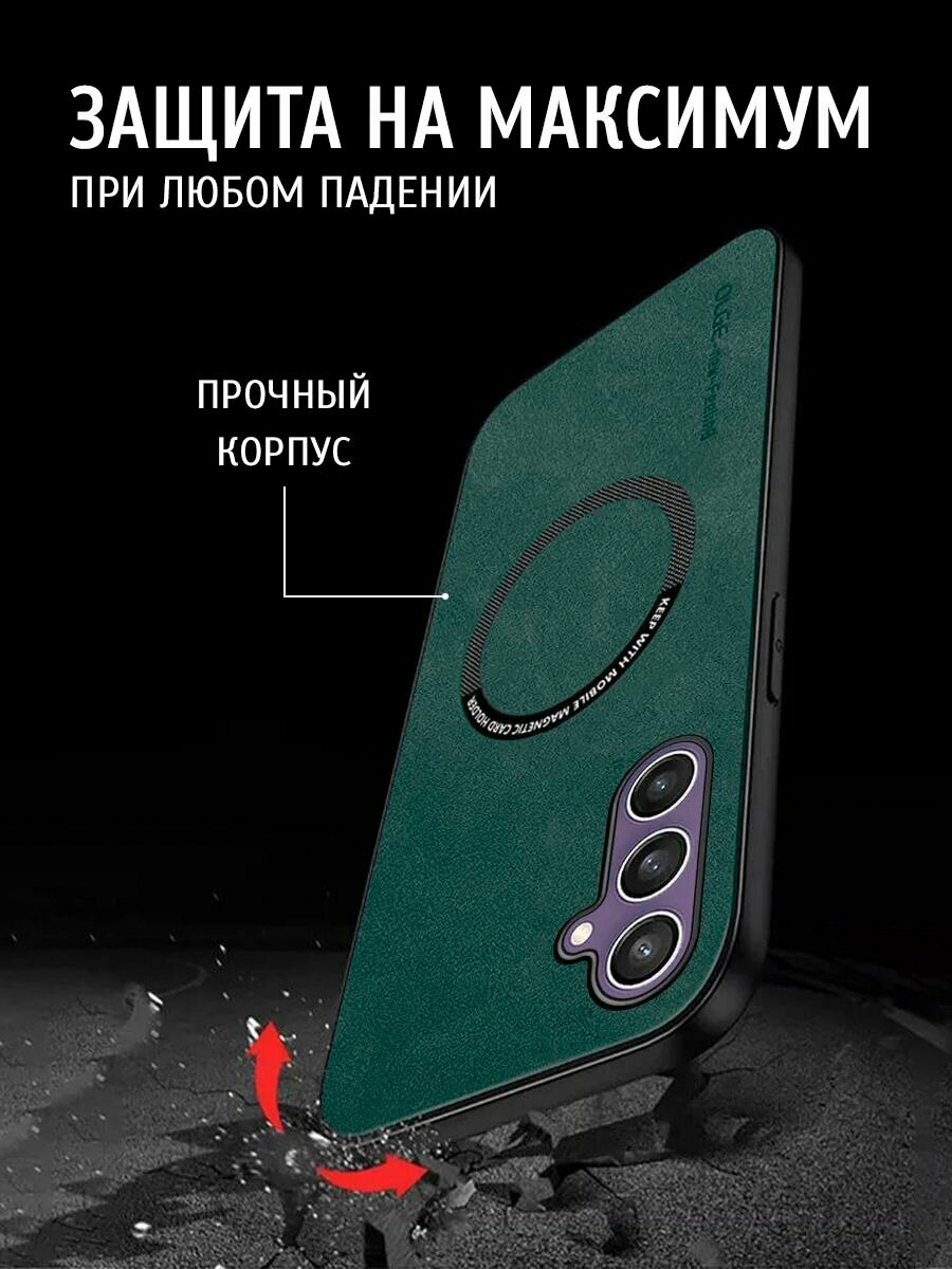 Чехол на Samsung Galaxy S23 FE / S23FE MagSafe на Самсунг s23 fe, Самсунг галакси с23 фе, с23фе защитная кожаная накладка с магнитом (зеленый) информация: