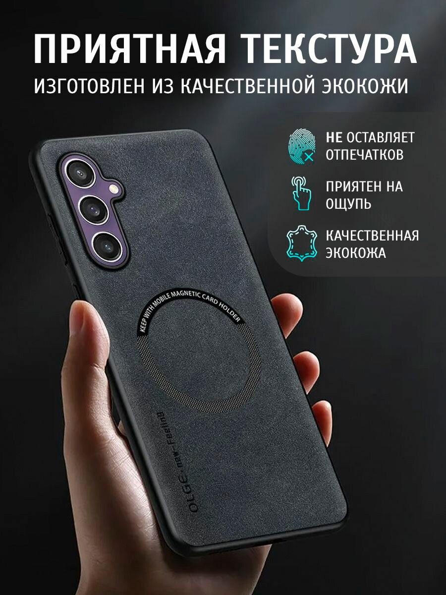 Чехол на Samsung Galaxy S23 FE / S23FE MagSafe на Самсунг s23 fe, Самсунг галакси с23 фе, с23фе защитная кожаная накладка с магнитом (черный) информация: