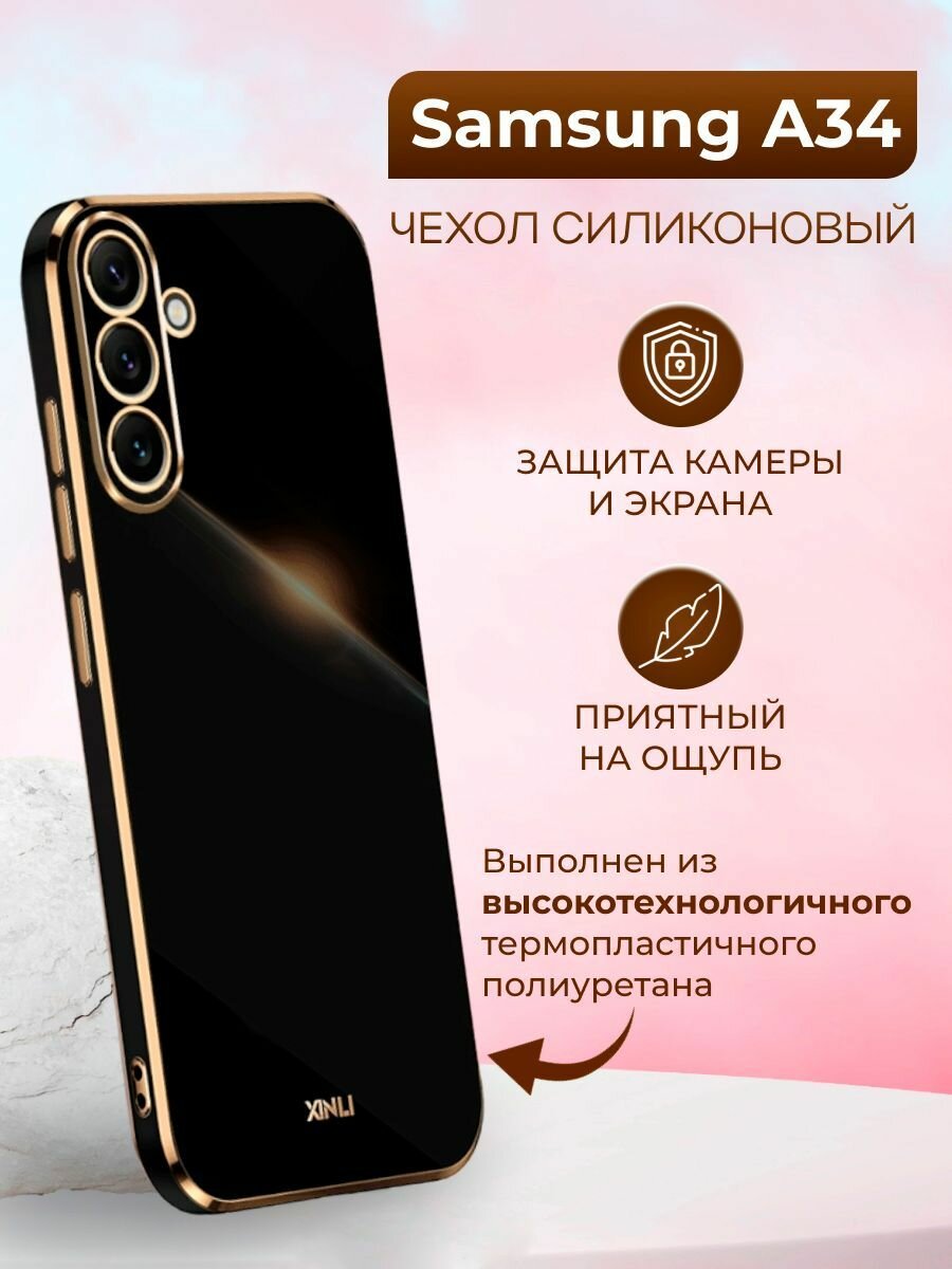 Силиконовый чехол xinli для Samsung A34 5G / Самсунг А34 5G (Чёрный) информация:
