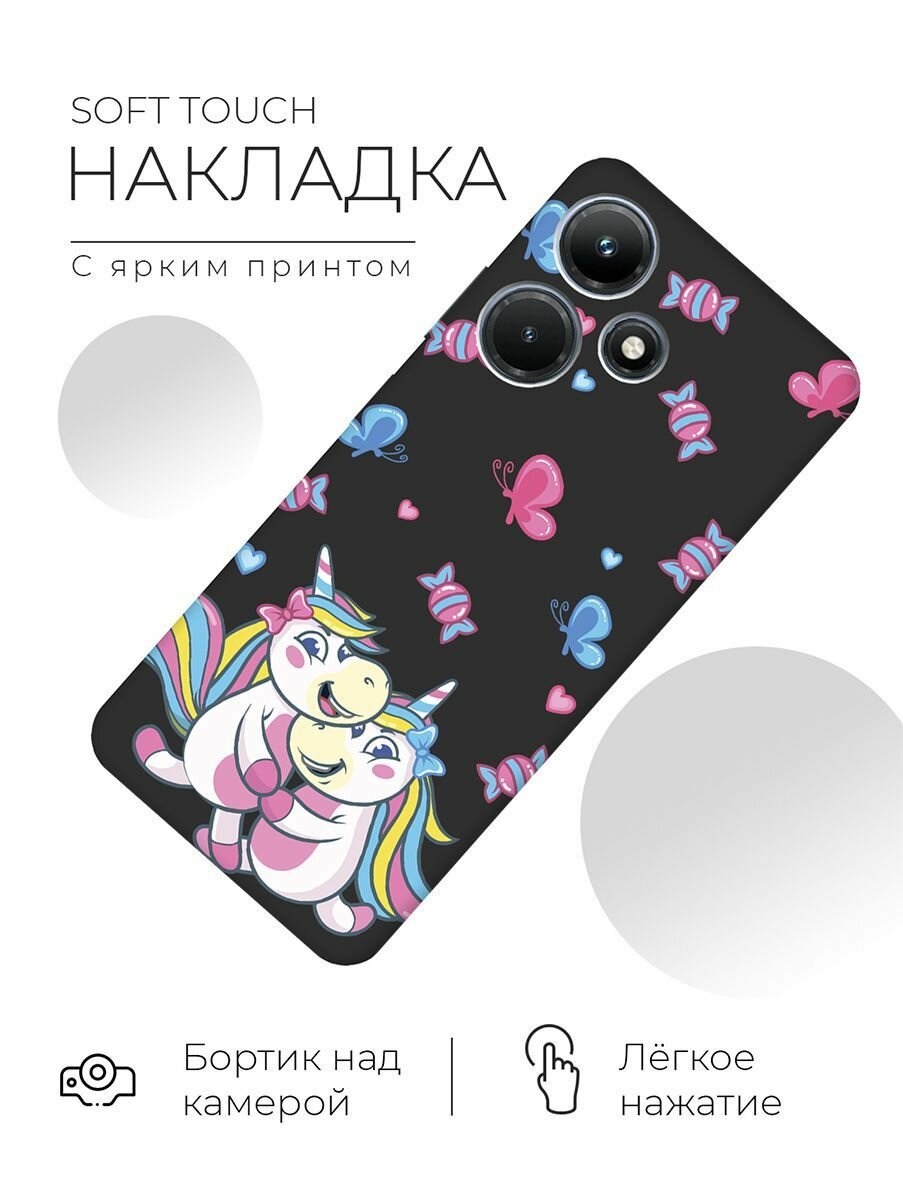 Матовый чехол Unicorns and Candies для Infinix Hot 30i / Инфиникс Хот 30и с 3D эффектом черный информация: