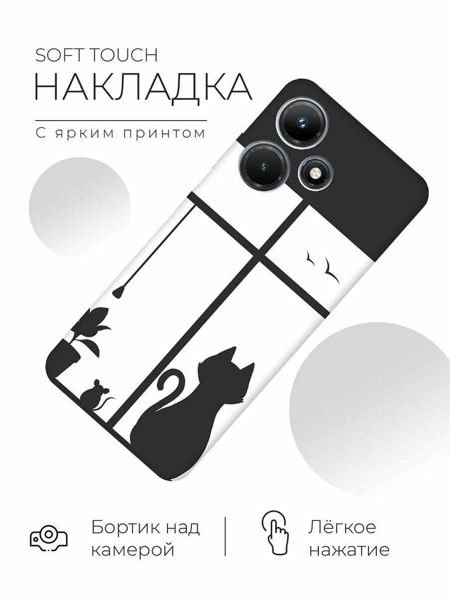 Матовый чехол Cat and Mouse для Infinix Hot 30i / Инфиникс Хот 30и с 3D эффектом черный информация: