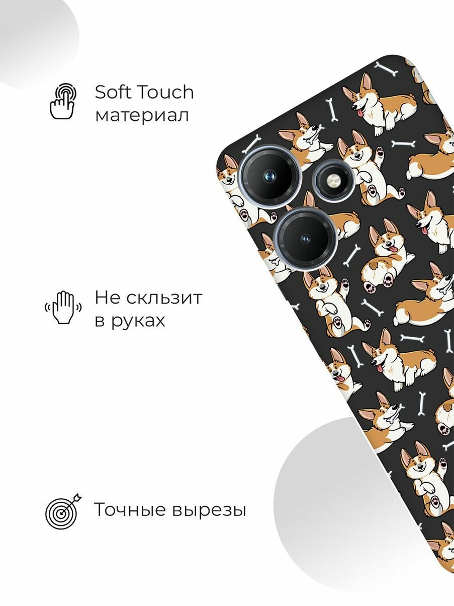 Матовый чехол Corgi Pattern для Infinix Hot 30i / Инфиникс Хот 30и с 3D эффектом черный информация: