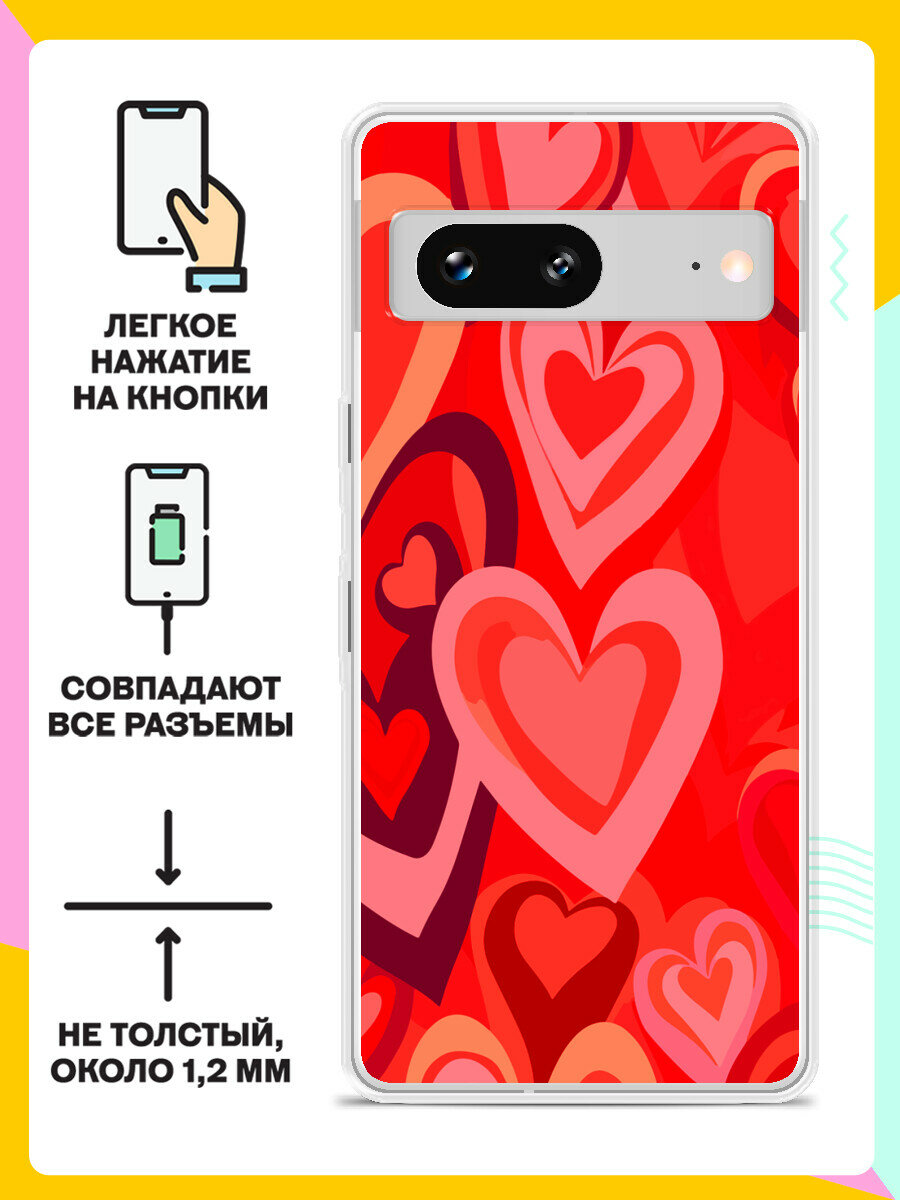 Силиконовый чехол на Google Pixel 7 Красные Сердца / для Гугл Пиксель 7 информация: