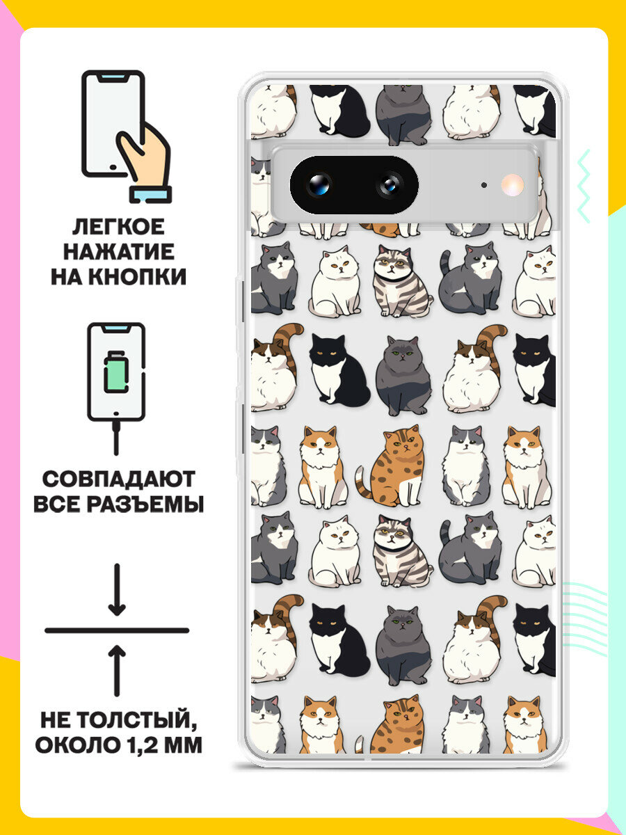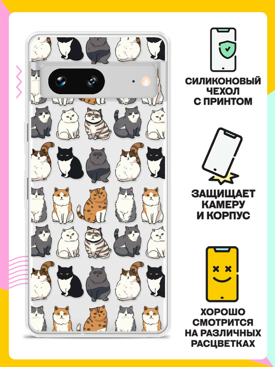 Силиконовый чехол на Google Pixel 7 Много котов / для Гугл Пиксель 7 475 ₽