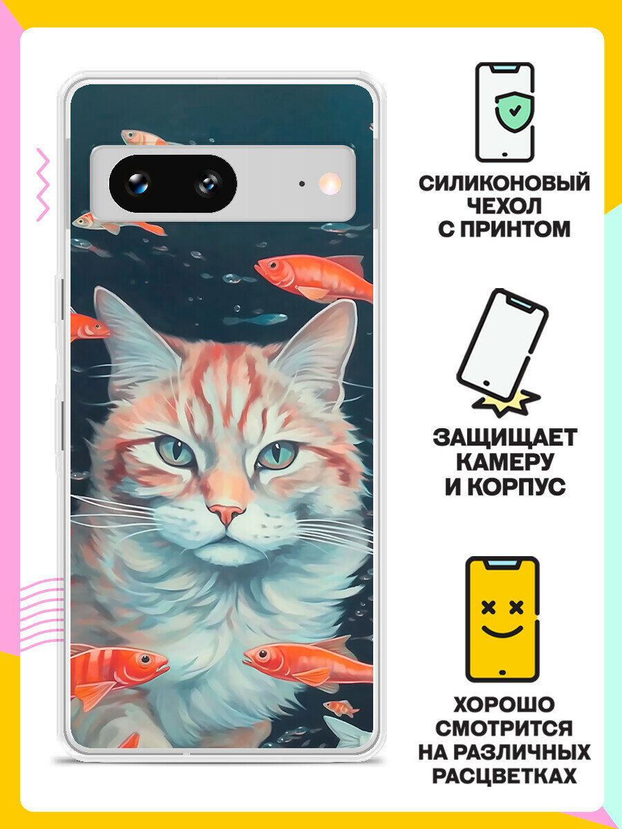 Силиконовый чехол на Google Pixel 7 Кот Среди Рыб / для Гугл Пиксель 7 информация: