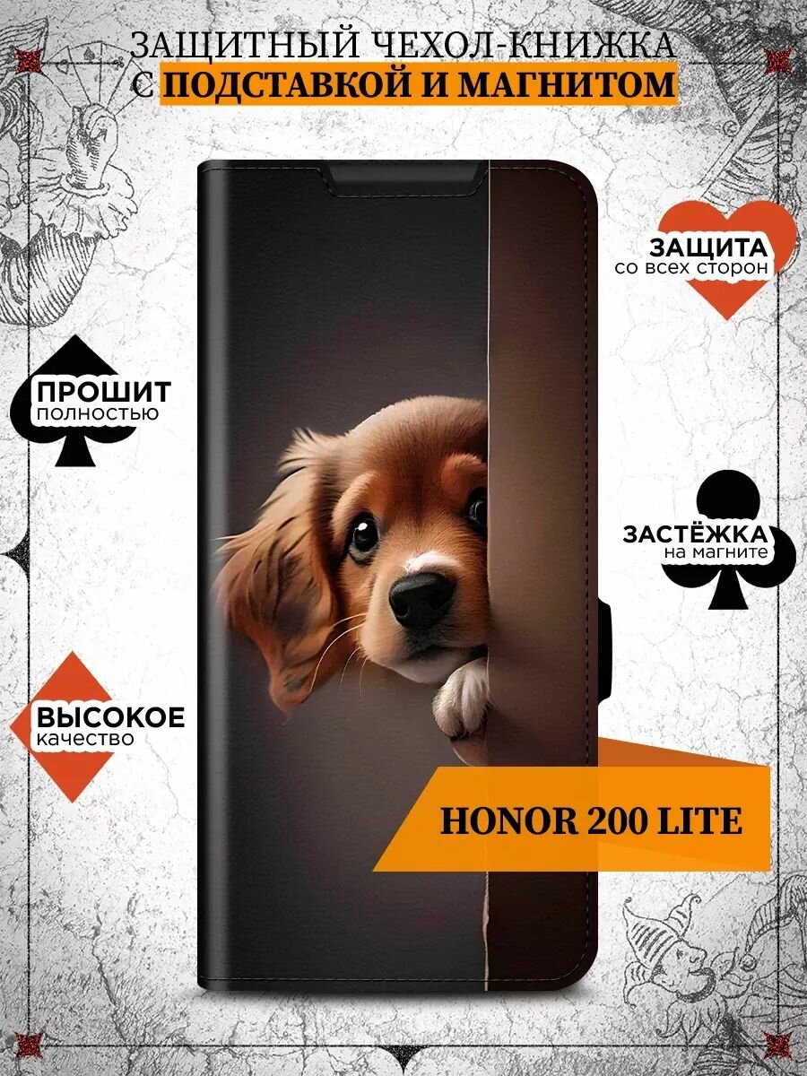 10 цен на Чехол-книжка для Honor 200 Lite (Хонор 200 Лайт) противоударный, с отделением под карты, крышка с магнитом из эко кожи с картинкой
