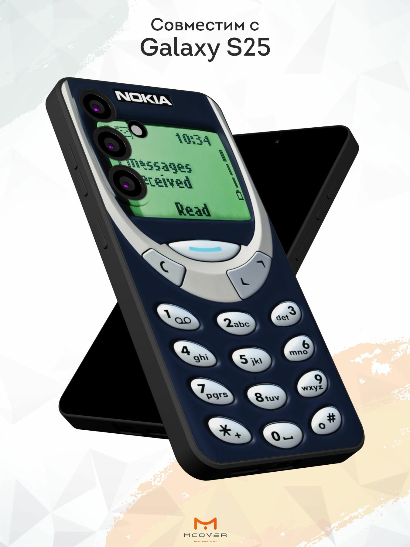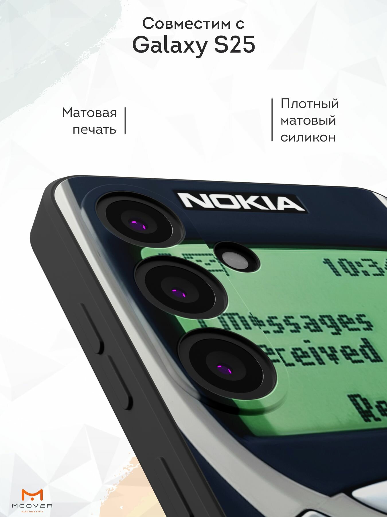 Силиконовый чехол Mcover, на Galaxy S25, с принтом Нокиа, черный, с защитой камеры информация:
