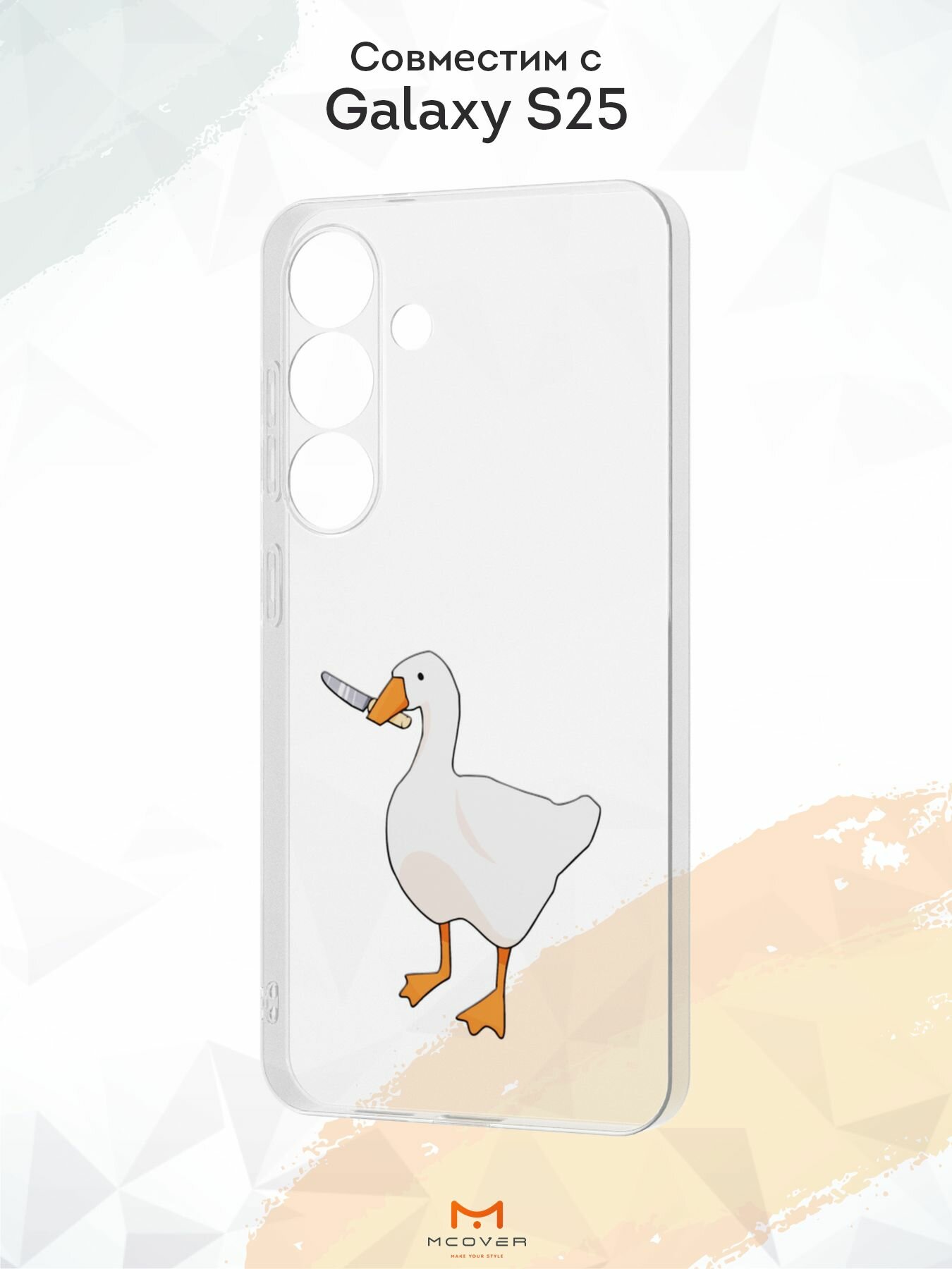 Отзывы на Силиконовый чехол Mcover, на Galaxy S25, с принтом Гусь с ножом, прозрачный, с защитой камеры