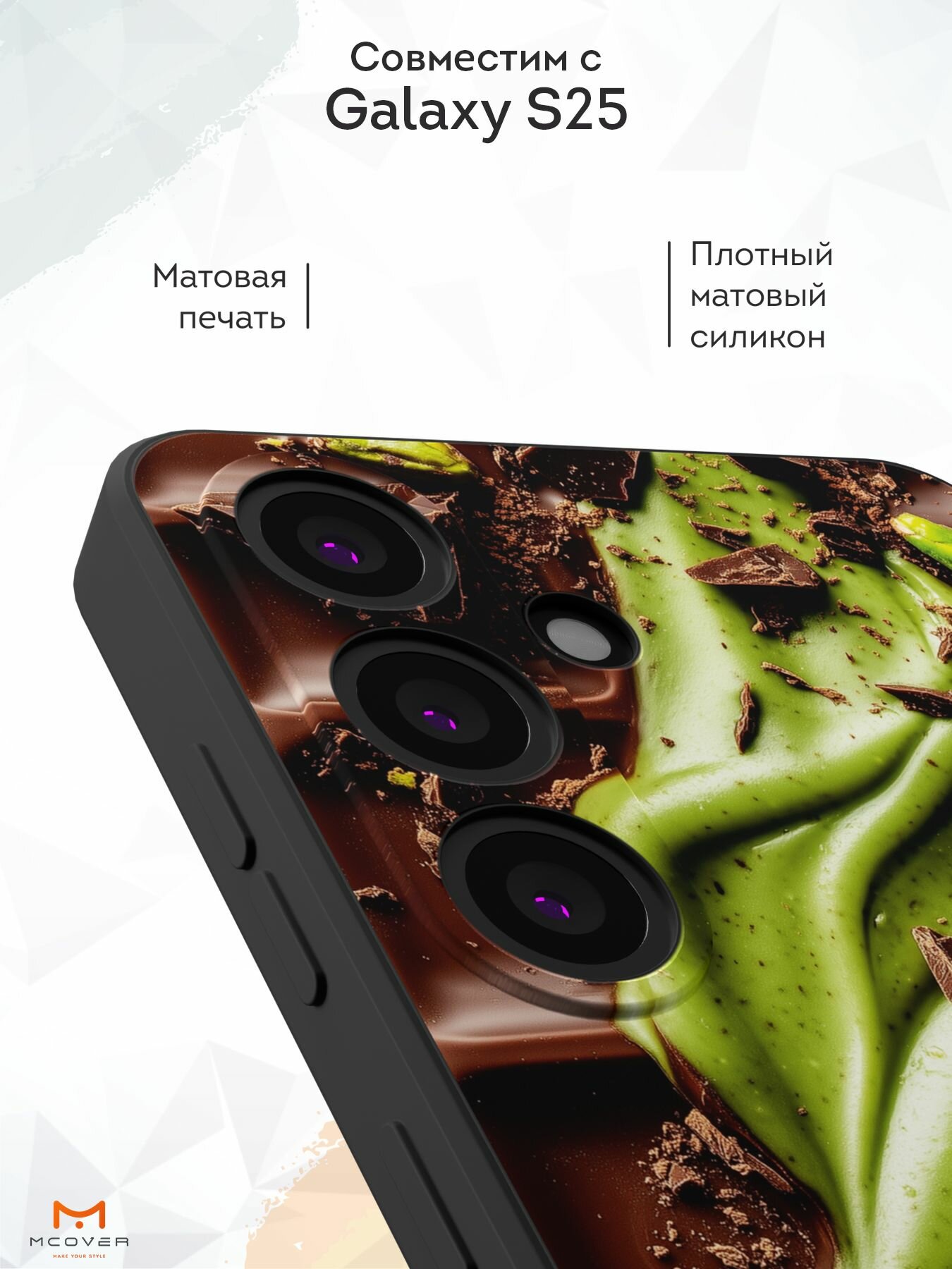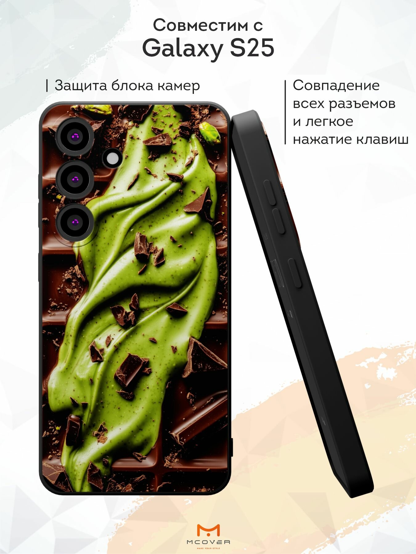 Отзывы на Силиконовый чехол Mcover, на Galaxy S25, с принтом Дубайский шоколад, черный, с защитой камеры