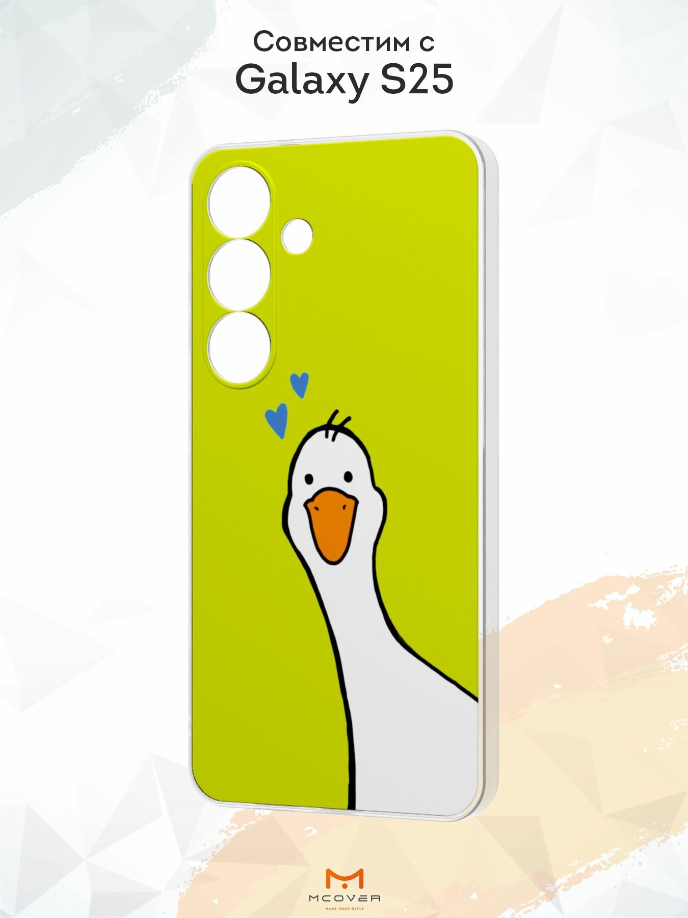 10 цен на Силиконовый чехол Mcover, на Galaxy S25, с принтом Гусь на салатовом, прозрачный, с защитой камеры