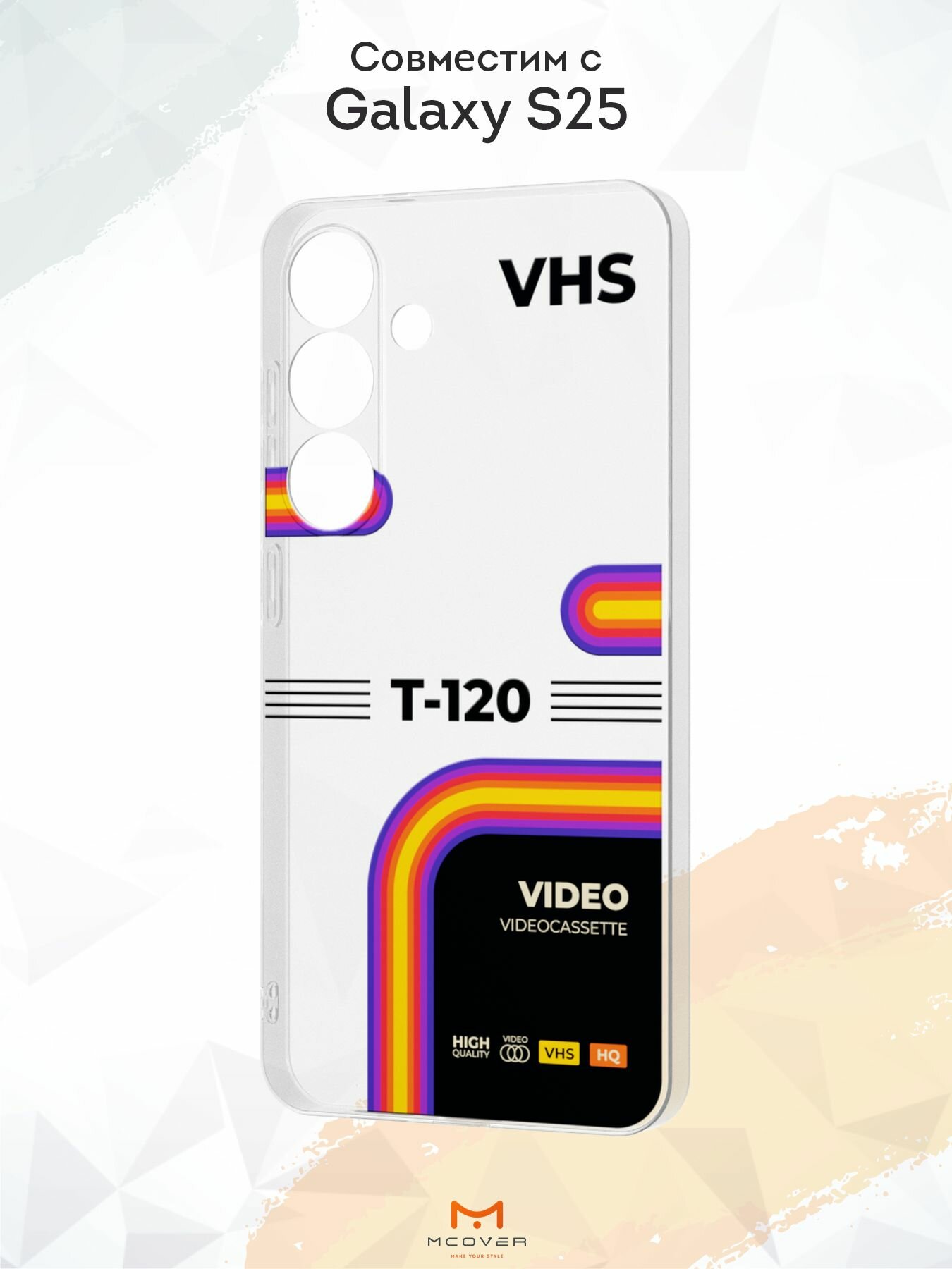 Силиконовый чехол Mcover, на Galaxy S25, с принтом VHS кассета, прозрачный, с защитой камеры информация:
