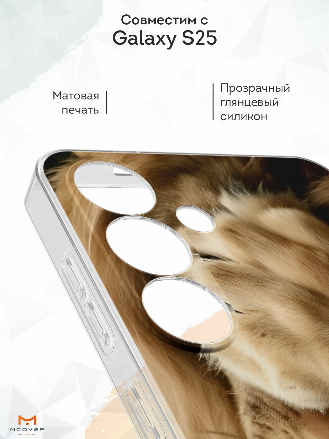 Силиконовый чехол Mcover, на Galaxy S25, с принтом Лев, прозрачный, с защитой камеры информация: