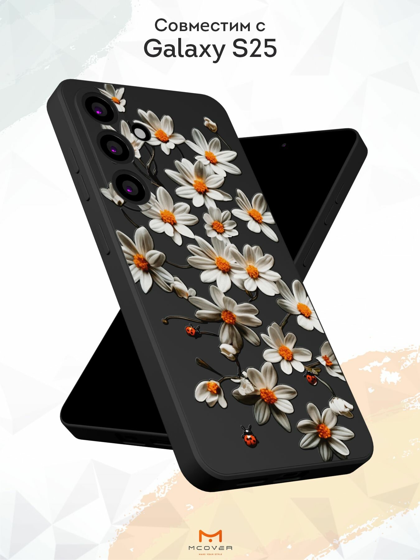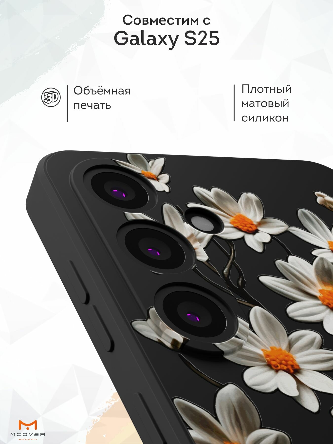 Отзывы на Силиконовый чехол Mcover, на Galaxy S25, с принтом Белые ромашки, черный, с защитой камеры