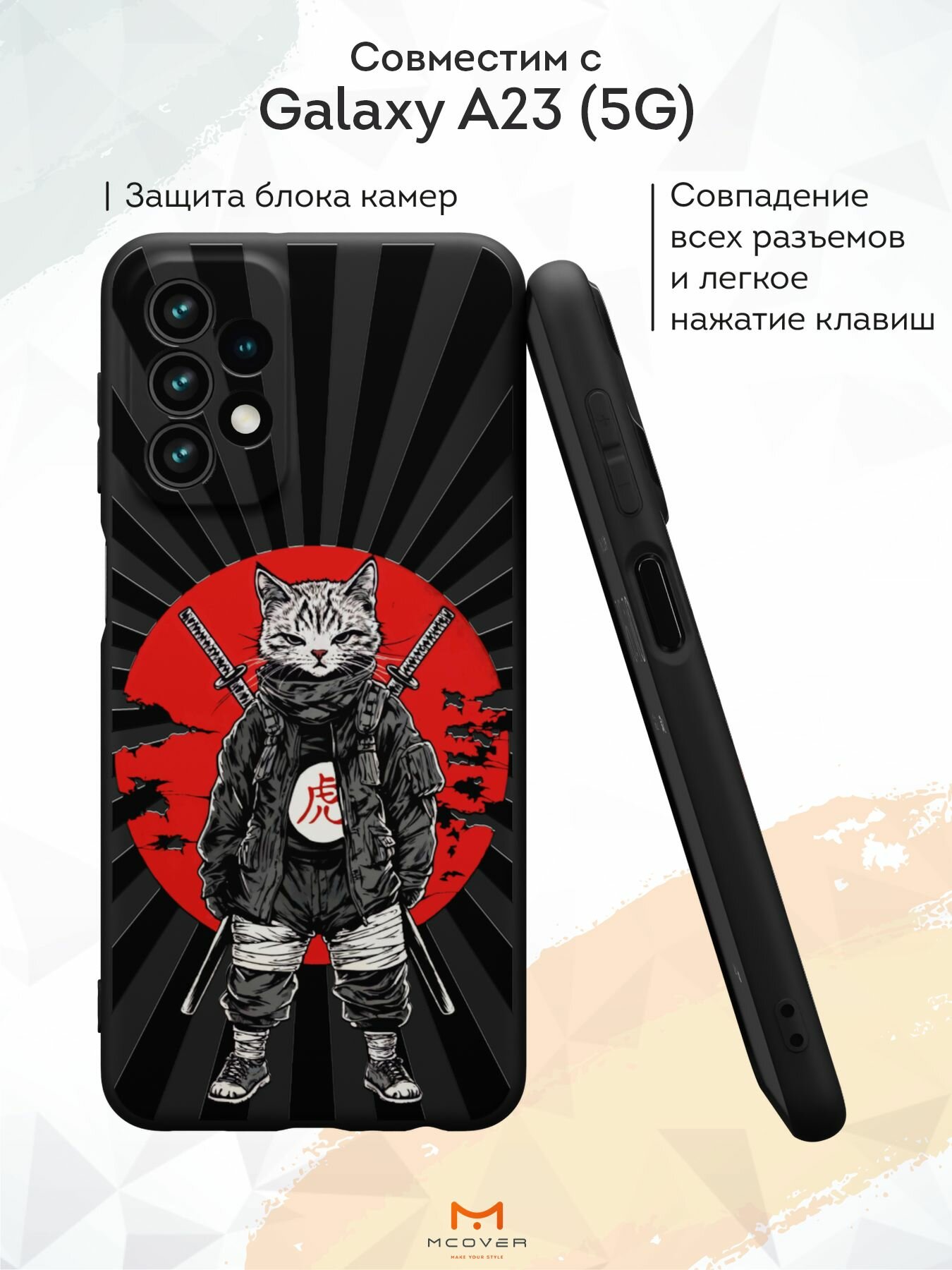 Отзывы на Силиконовый чехол Mcover для Galaxy A23 (Галакси А23), Кот боец с катанами