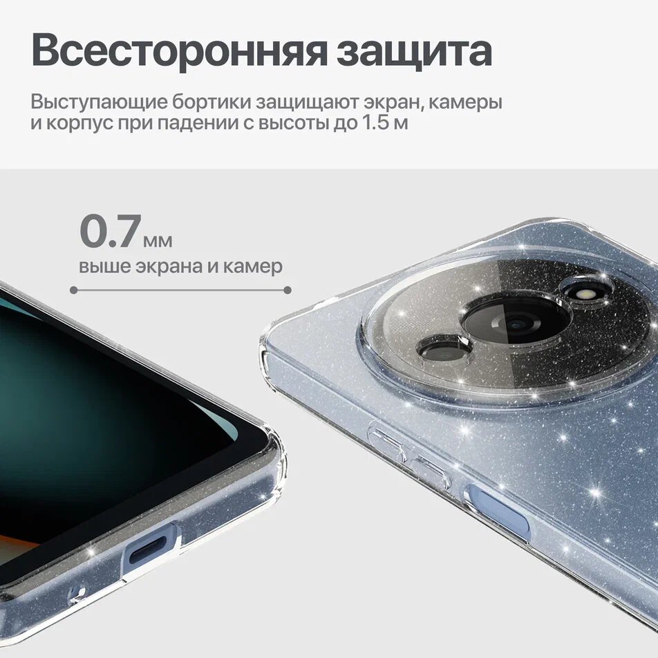 Отзывы на Блестящий чехол для Redmi A3, POCO С61 / Редми А3, Поко С61 прозрачный