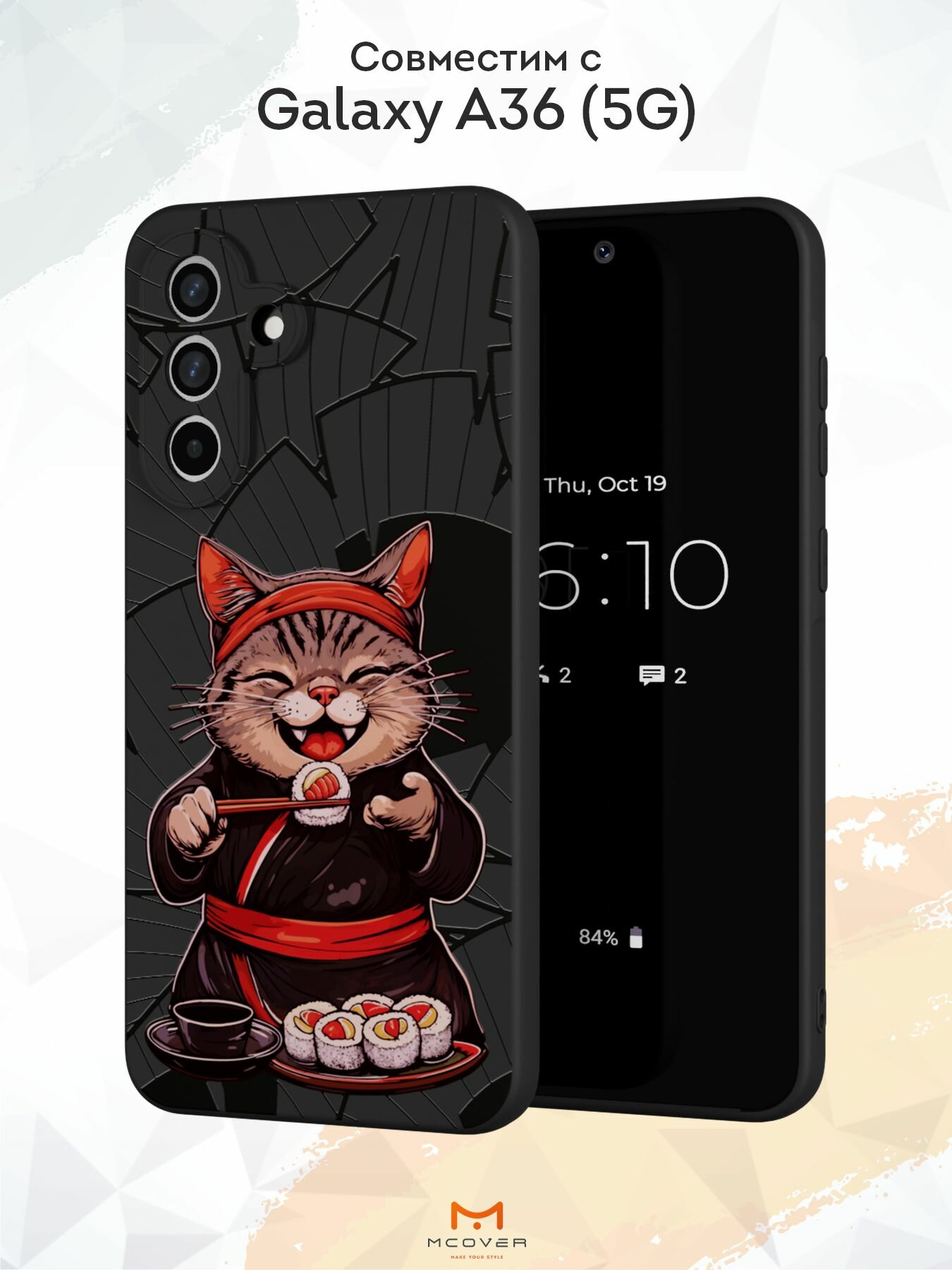 10 цен на Силиконовый чехол Mcover на Galaxy A36 (5G), с принтом Радостный сушеед, черный, с защитой камеры
