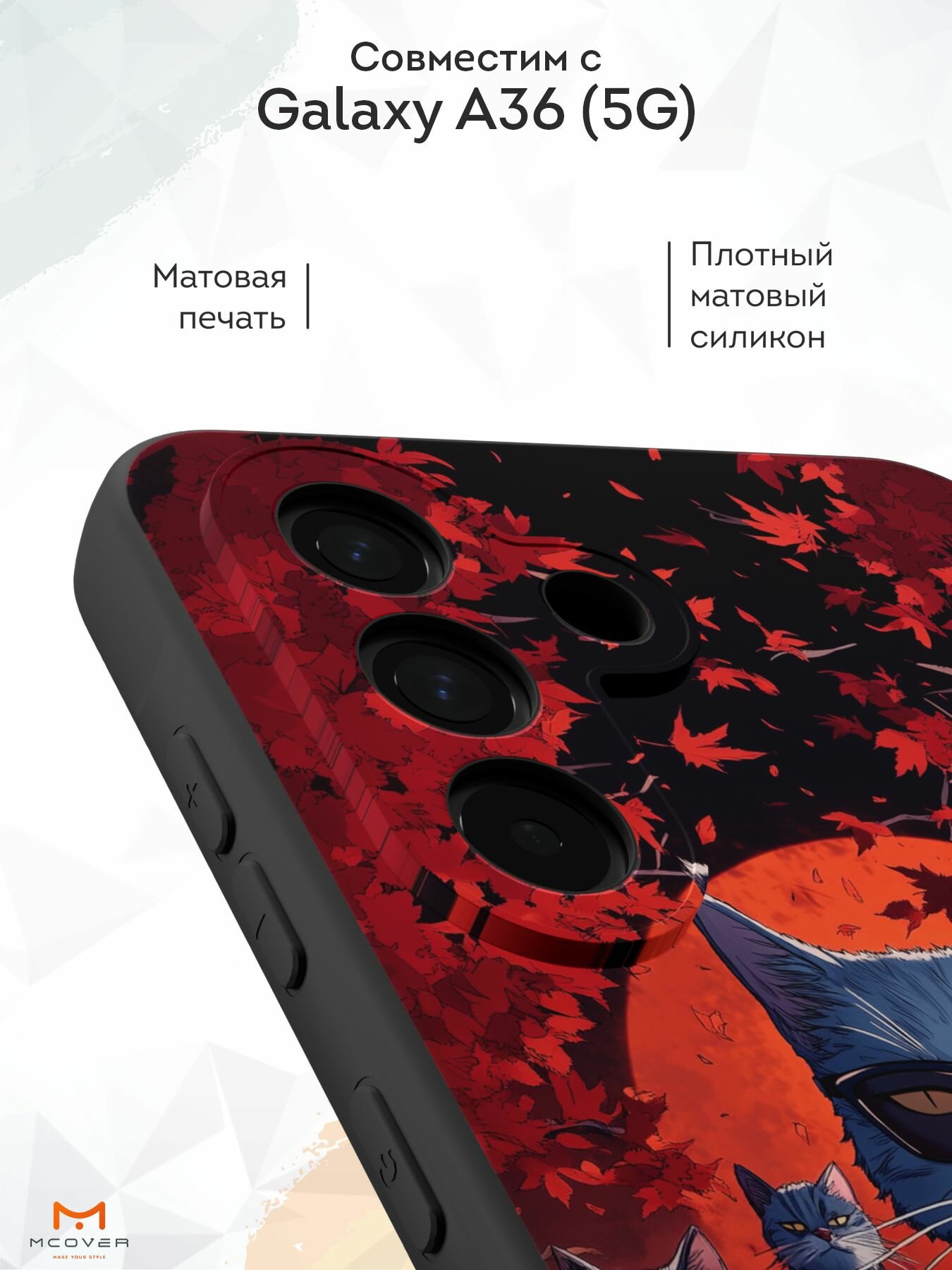 Силиконовый чехол Mcover на Galaxy A36 (5G), с принтом Кот в кимоно, черный, с защитой камеры 530 ₽