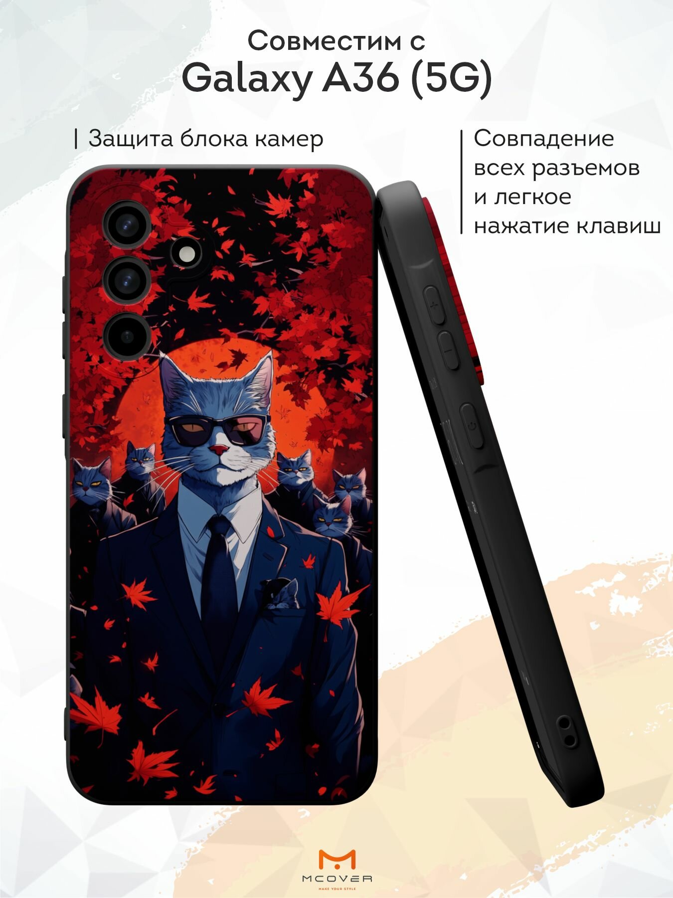 Отзывы на Силиконовый чехол Mcover на Galaxy A36 (5G), с принтом Кошачья банда, черный, с защитой камеры
