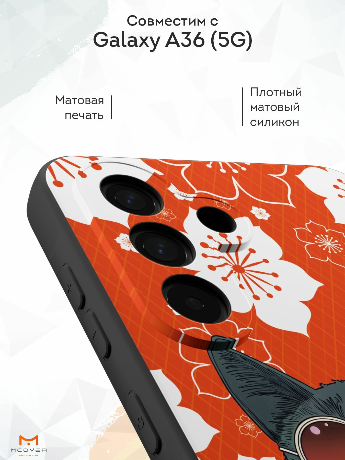 Отзывы на Силиконовый чехол Mcover на Galaxy A36 (5G), с принтом Кот японец в очках, черный, с защитой камеры