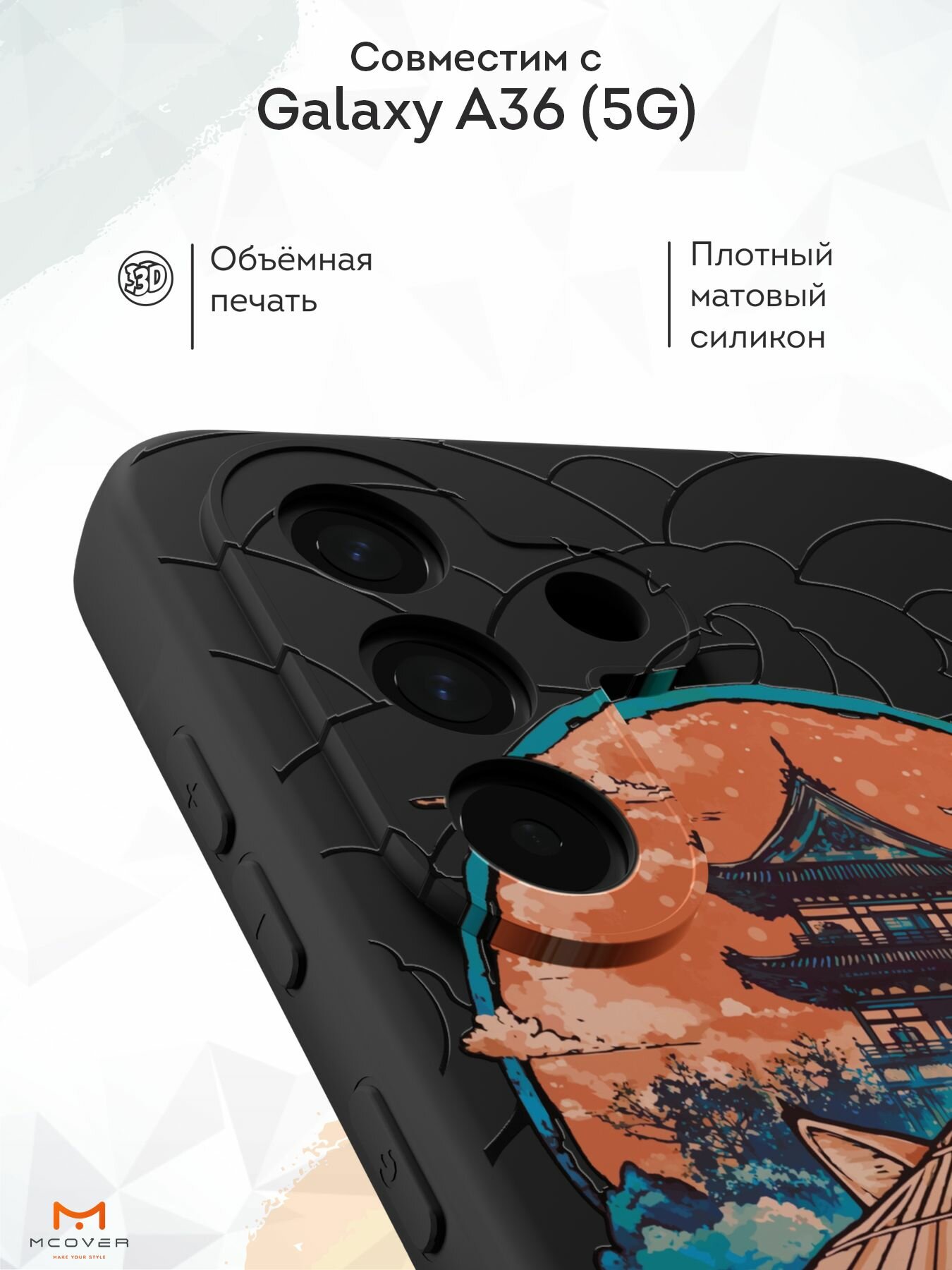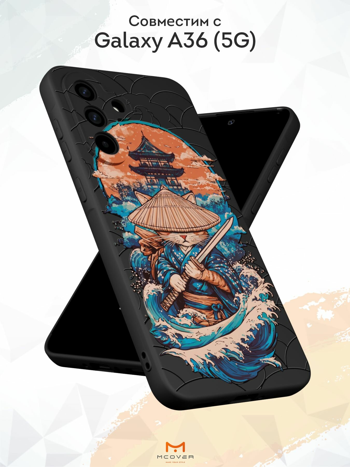 Силиконовый чехол Mcover на Galaxy A36 (5G), с принтом Кот в кимоно, черный, с защитой камеры 530 ₽