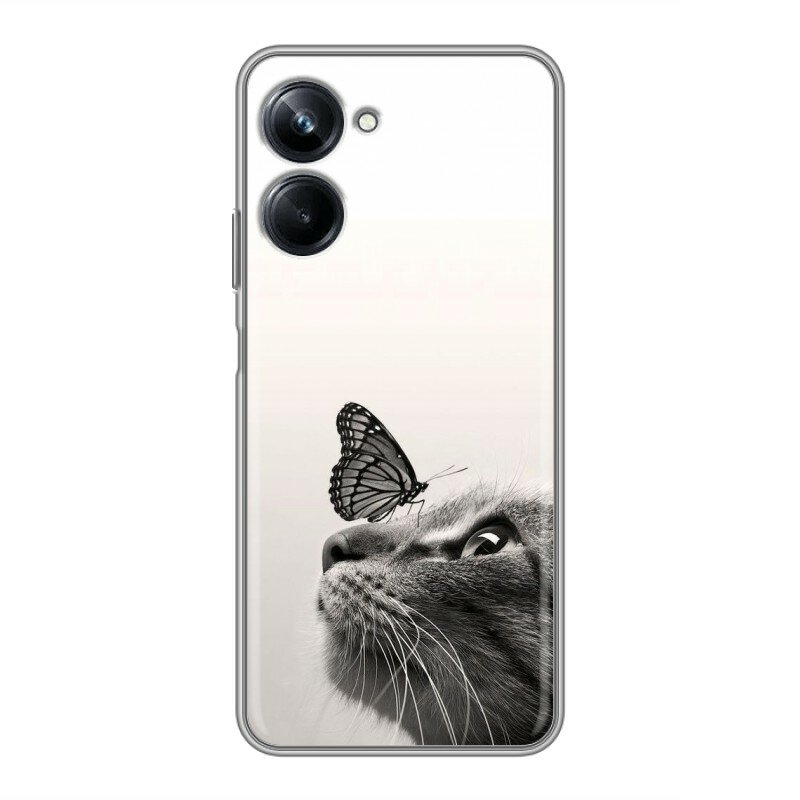 Дизайнерский силиконовый чехол для Реалме 10 Про / Realme 10 Pro Кот и бабочка информация: