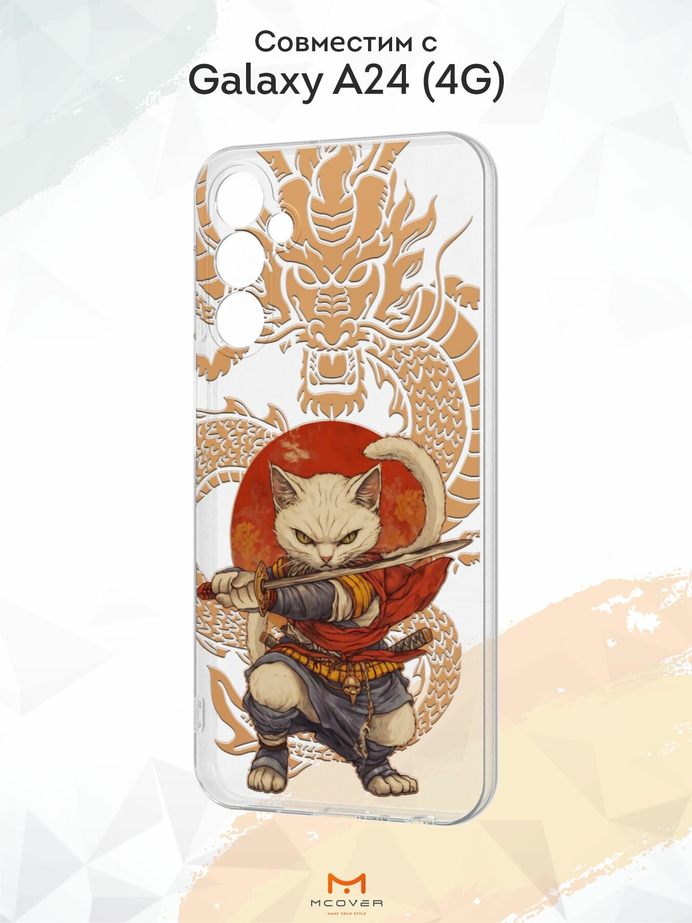 Силиконовый чехол Mcover для Galaxy A24 (Галакси А24), Кошачий самурай информация:
