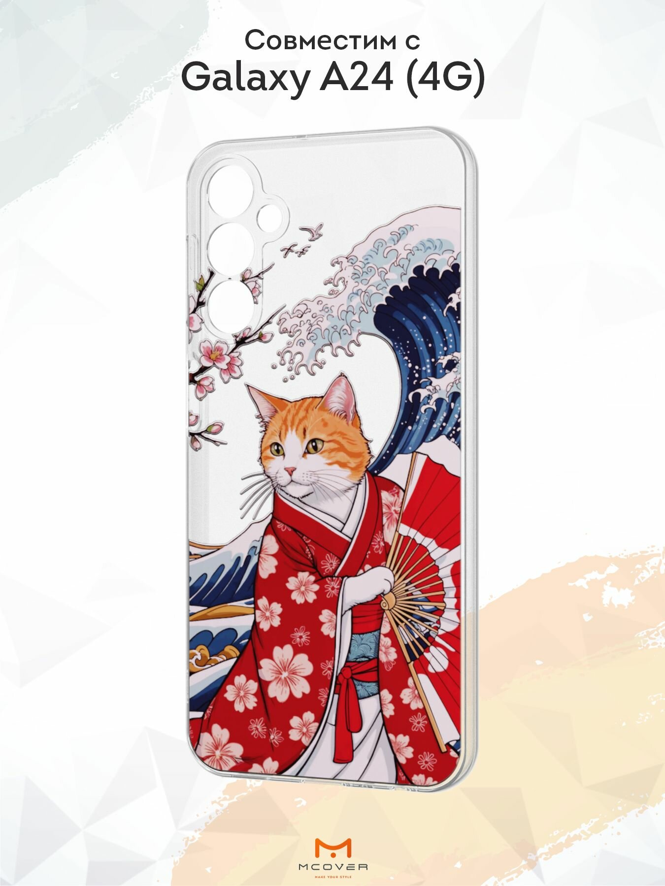 Силиконовый чехол Mcover для Galaxy A24 (Галакси А24), Японский кот 530 ₽