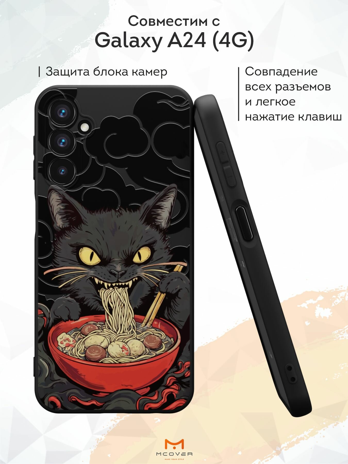 Отзывы на Силиконовый чехол Mcover для Galaxy A24 (Галакси А24), Кот ест лапшу
