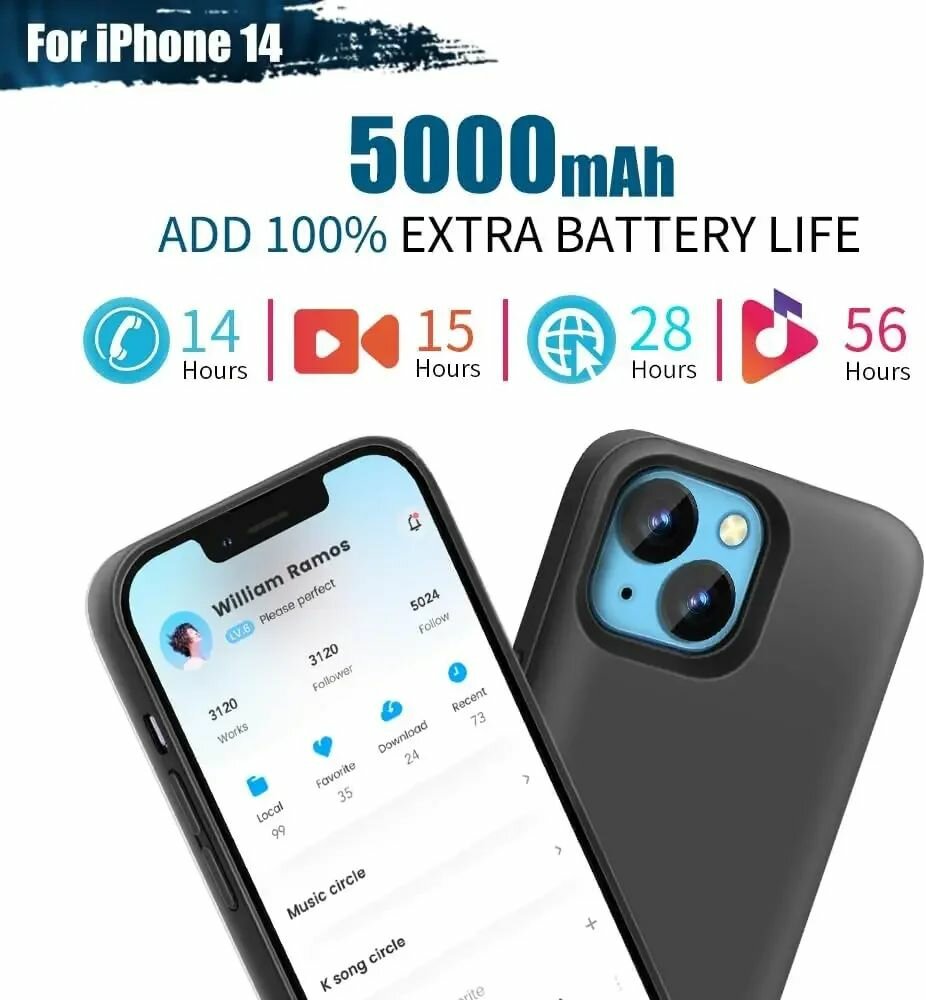 10 цен на Чехол-аккумулятор для iPhone 14 Внешний аккумулятор Power bank чехол для телефона , Fraternize 5000мАч