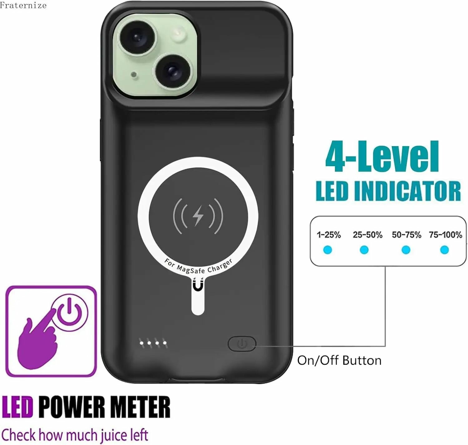 Магнитная беспроводная Чехол-аккумулятор для iPhone 15 Внешняя крышка для зарядки Power bank 10000 мАч
